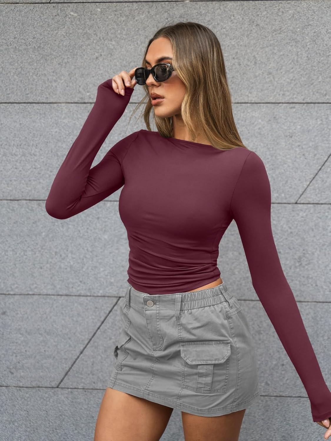 Be the first to review “Trendy Queen Women’s Boat Neck Tops Long Sleeve Shirts Casual Fitted Tee Shirts Solid Color Fall Basic Clothes 2025(Winered)”
