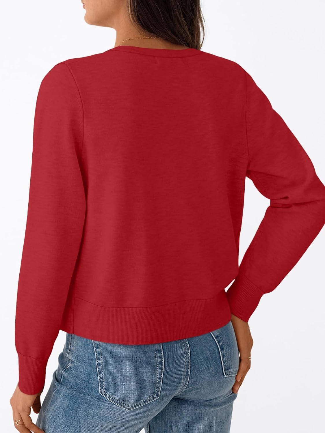 imageTrendy Queen Womens Cardigan Sweaters Lightweight Crew Neck Outfits Fall Fashion 2025 ClothingRed