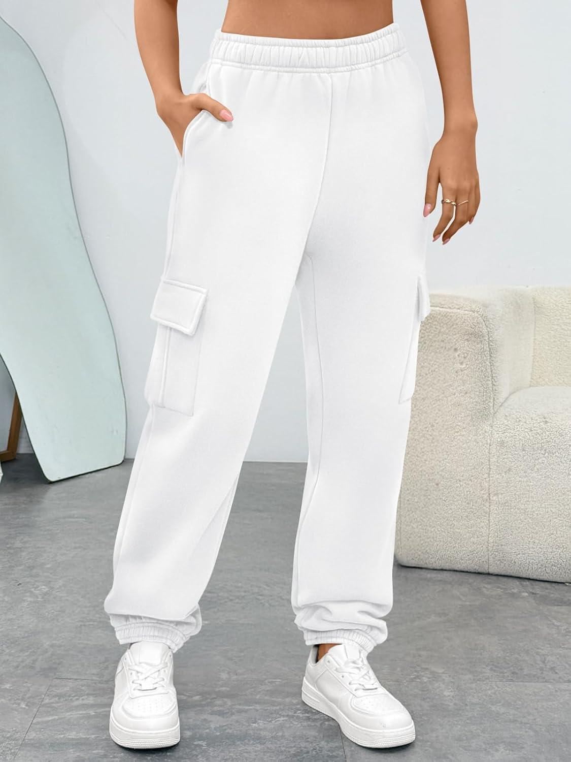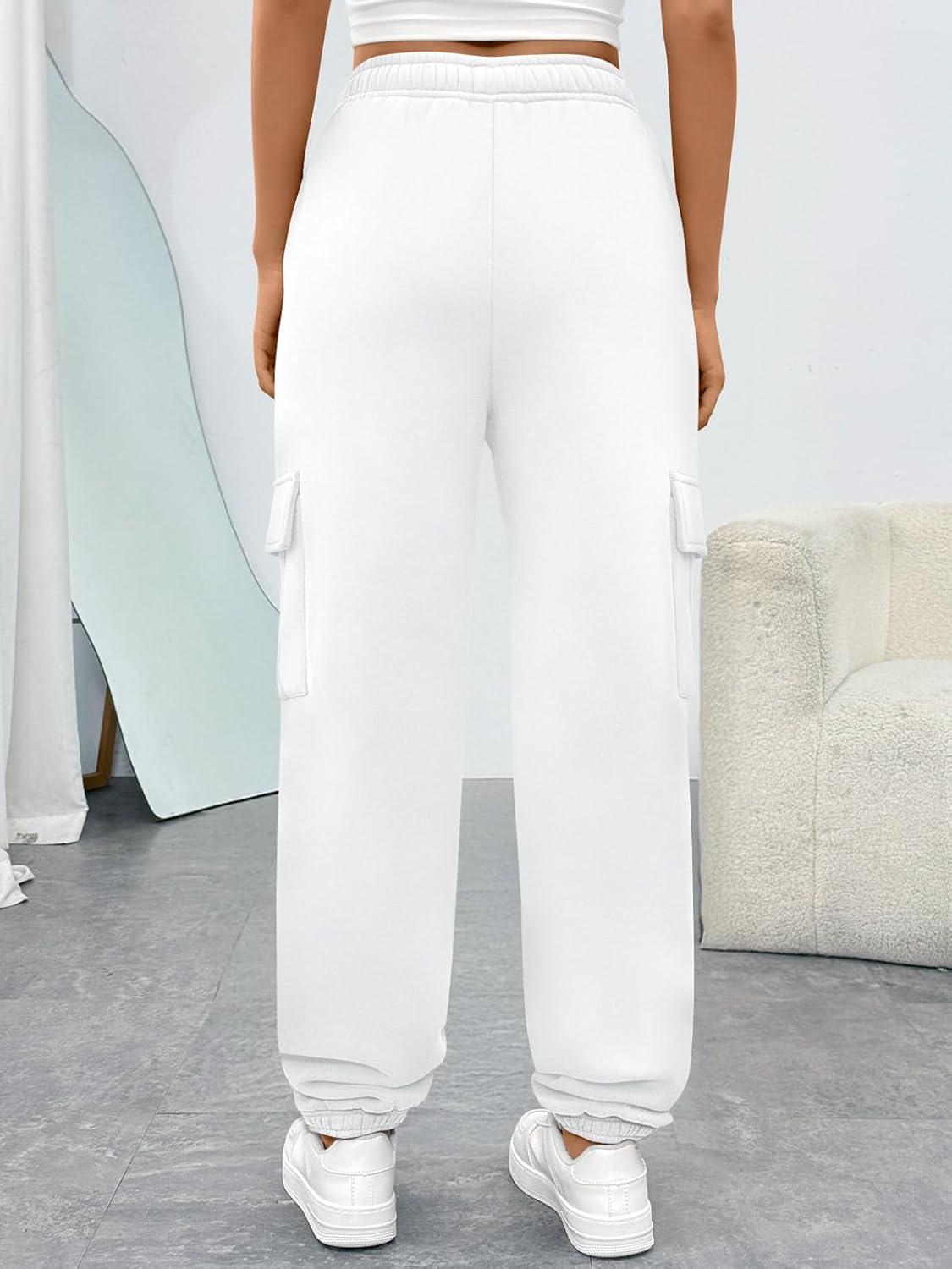 Trendy Queen Womens Cargo Sweatpants Oversized Fleece Joggers Baggy Athletic Pants with Pocket(White)