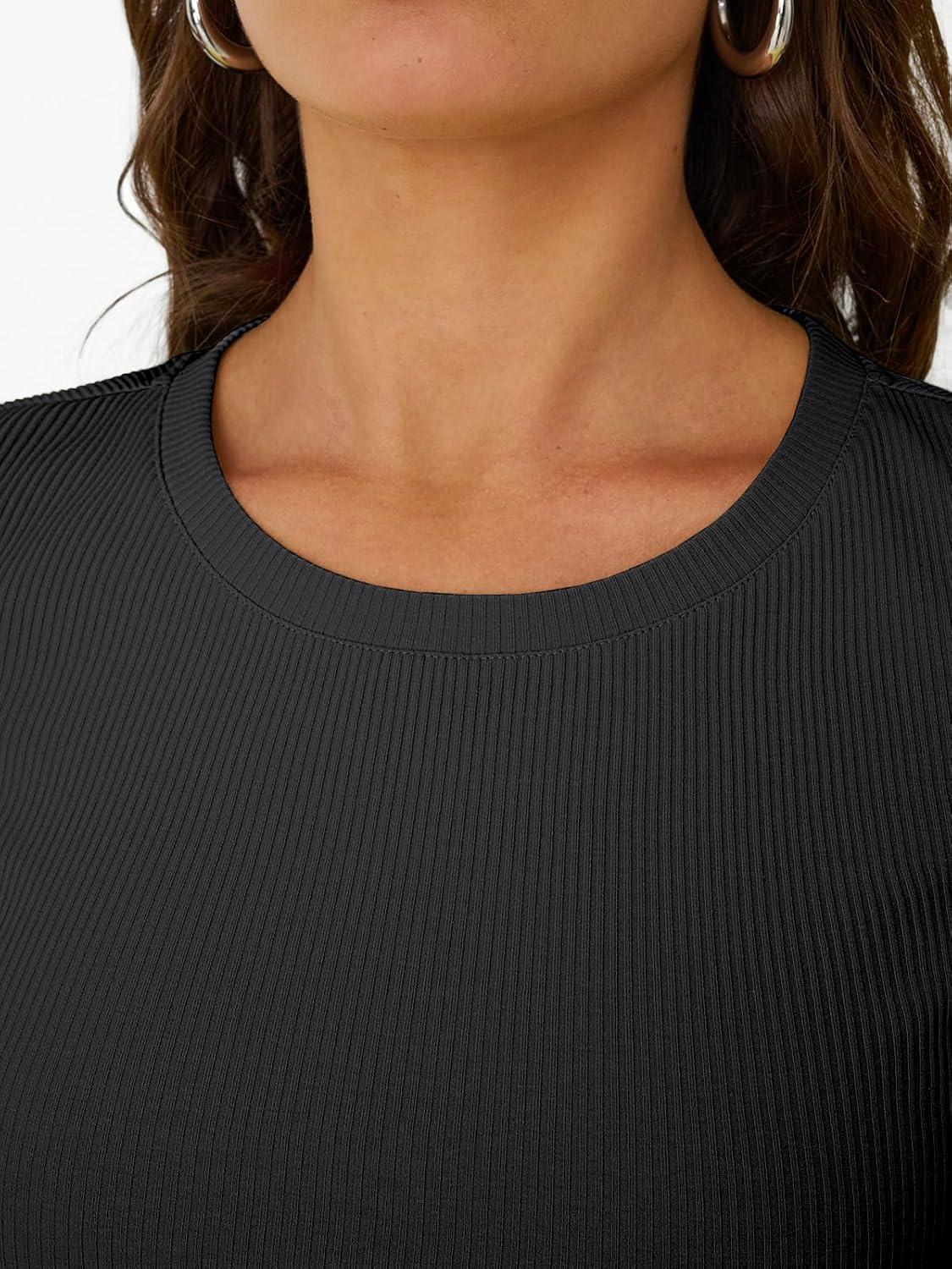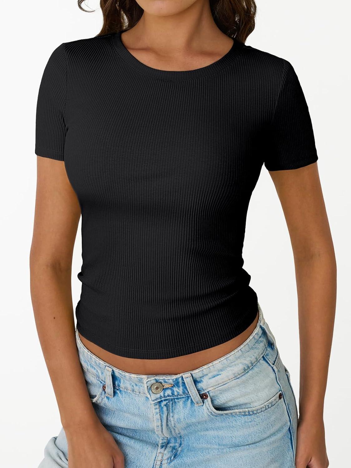 Trendy Queen Women’s Crewneck Ribbed Knit Fitted T-Shirt(Black)