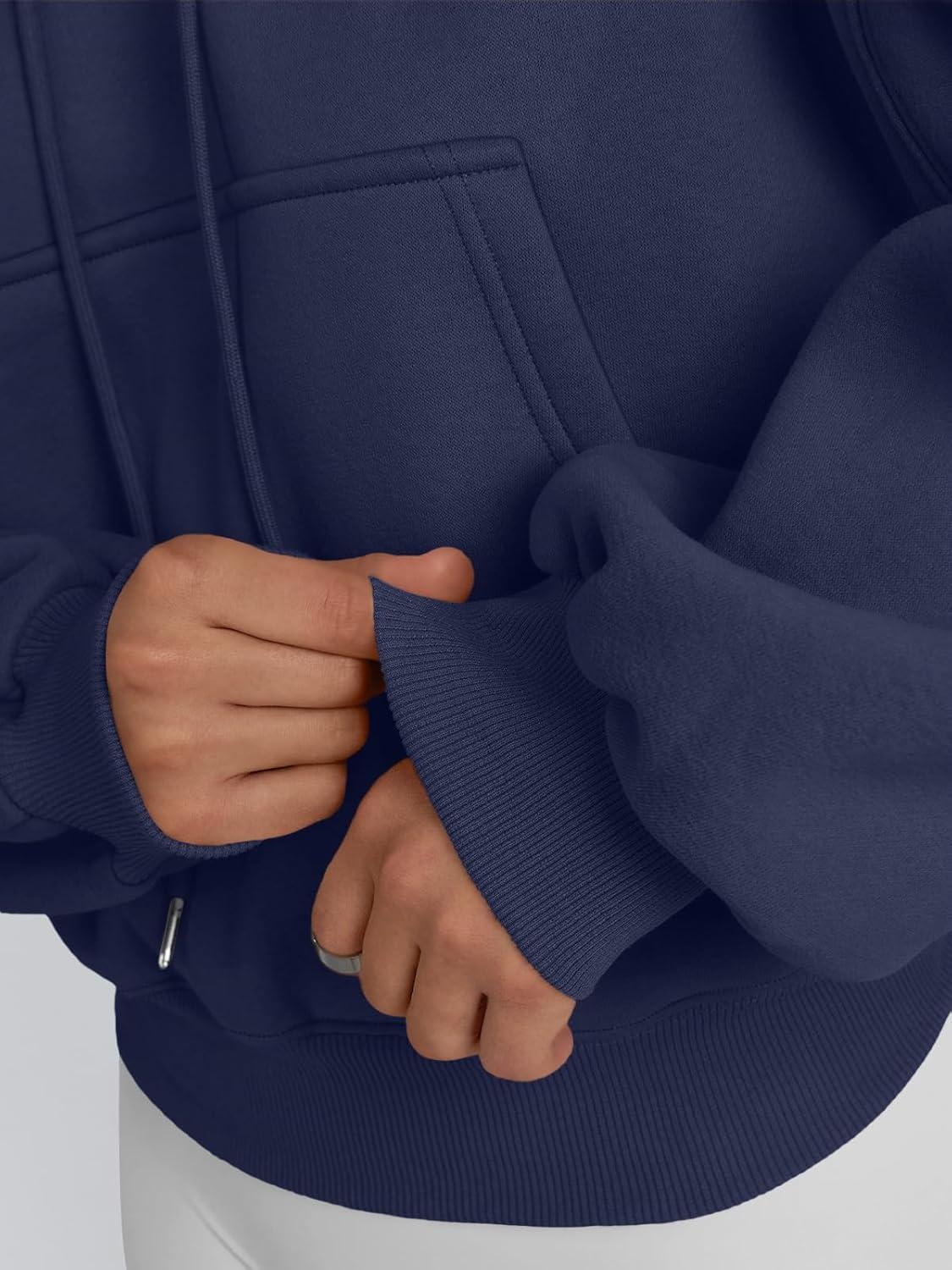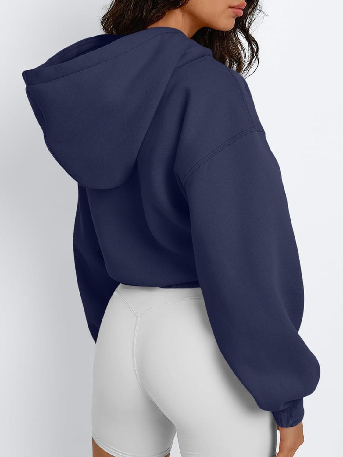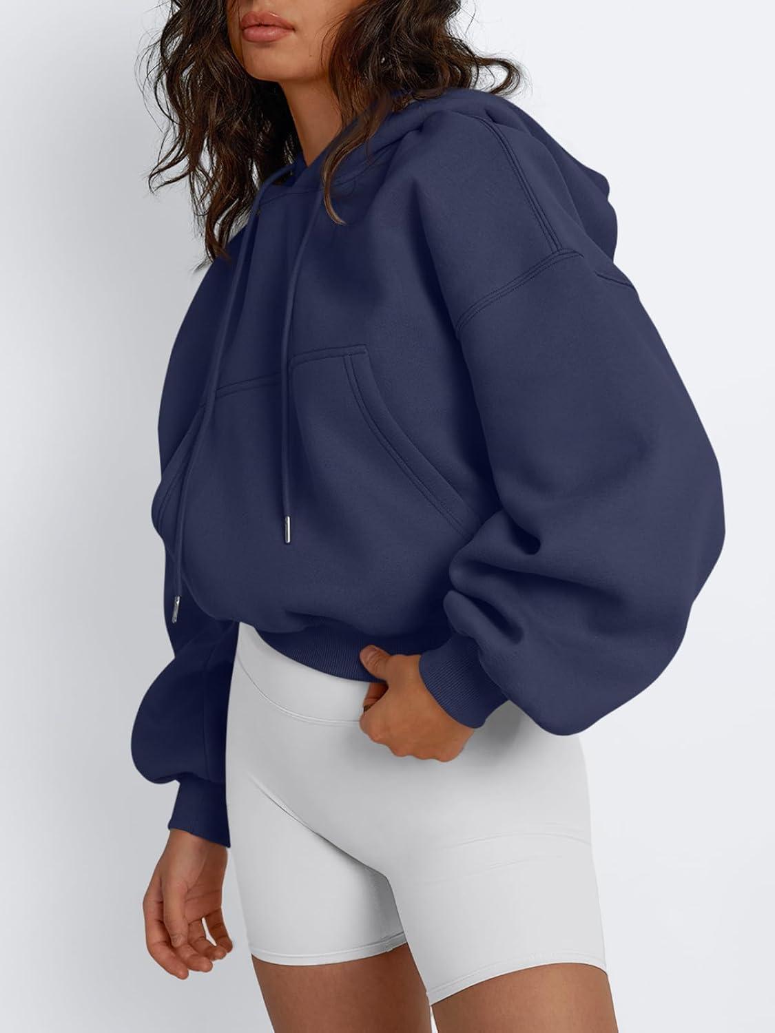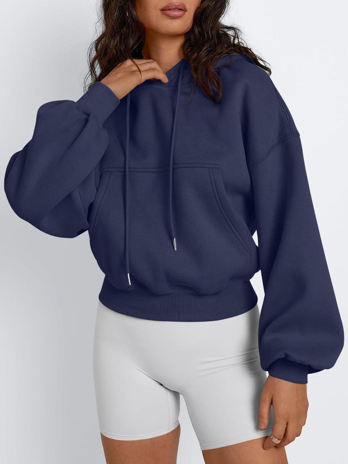 Trendy Queen Womens Cute Cropped Hoodies Y2k Long Sleeve Sweatshirts Fall Fashion Outfits Winter Sweater Clothes 2025(Navy)