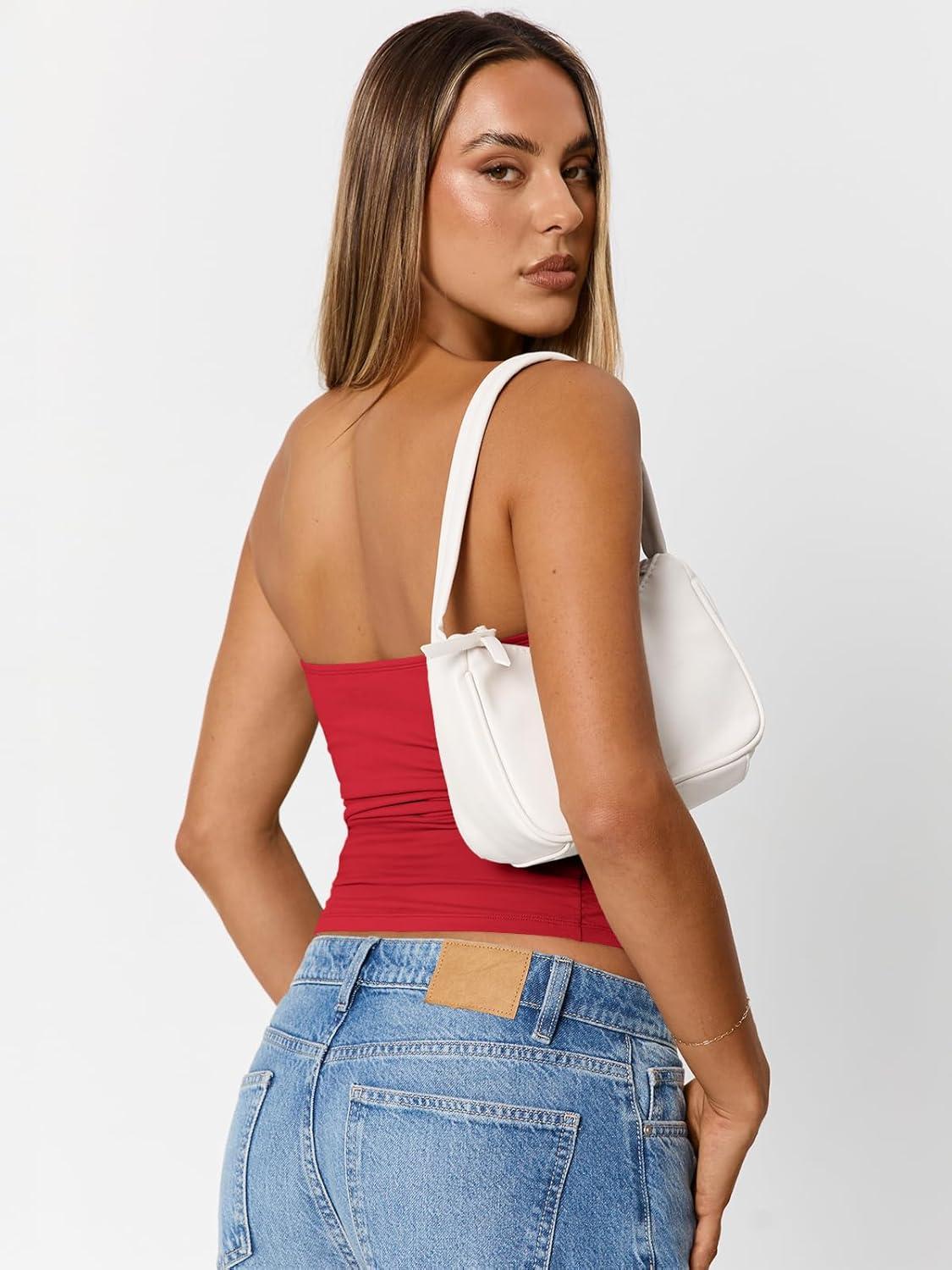 image:imageTrendy Queen Womens Cute Summer Tube Tops Going Out Strapless Ruched Backless Sleeveless Bandeau Y2k Clothes 2025Red