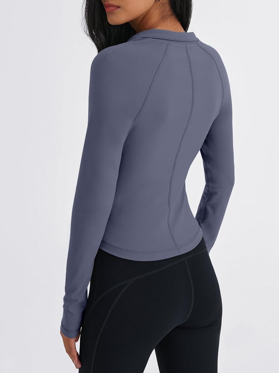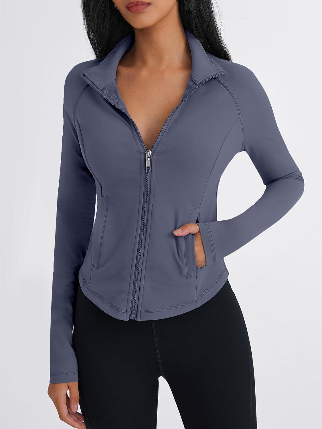 Trendy Queen Women’s Full Zip Up Scrubs Lightweight Jacket Cropped Long Sleeve Workout Sweatshirts Slim Fit Running Hoodies(Coffee Grey)