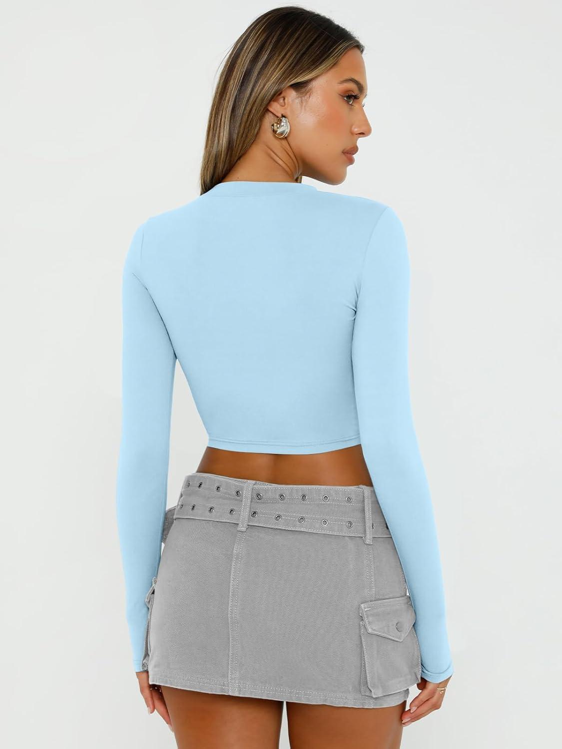 Trendy Queen Womens Long Sleeve Crop Tops Basic Slim Fitted Shirts Spring Fashion Outfits 2026 Teen Girl Clothes(Baby Blue)