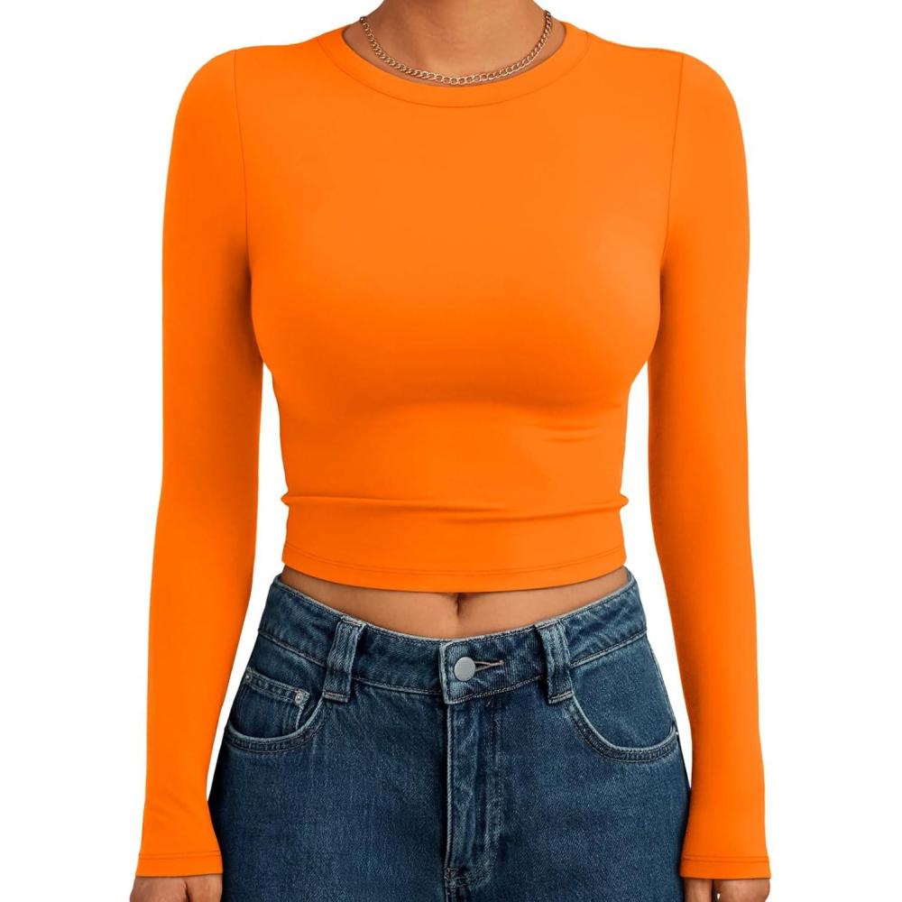 image:imageTrendy Queen Womens Long Sleeve Crop Tops Basic Slim Fitted Shirts Spring Fashion Outfits 2026 Teen Girl ClothesOrange
