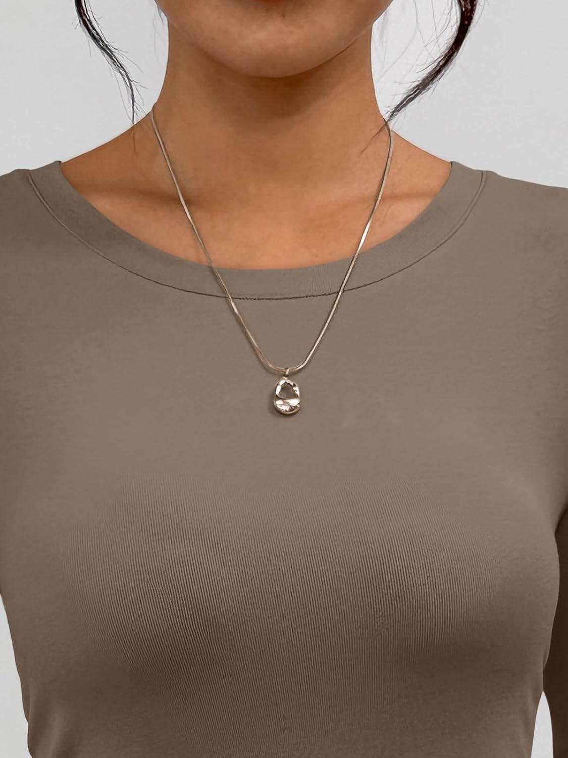 image:imageTrendy Queen Womens Long Sleeve TShirts Basic Crop Tops 2026 Spring Fashion Outfits Going Out Winter ClothesKhaki