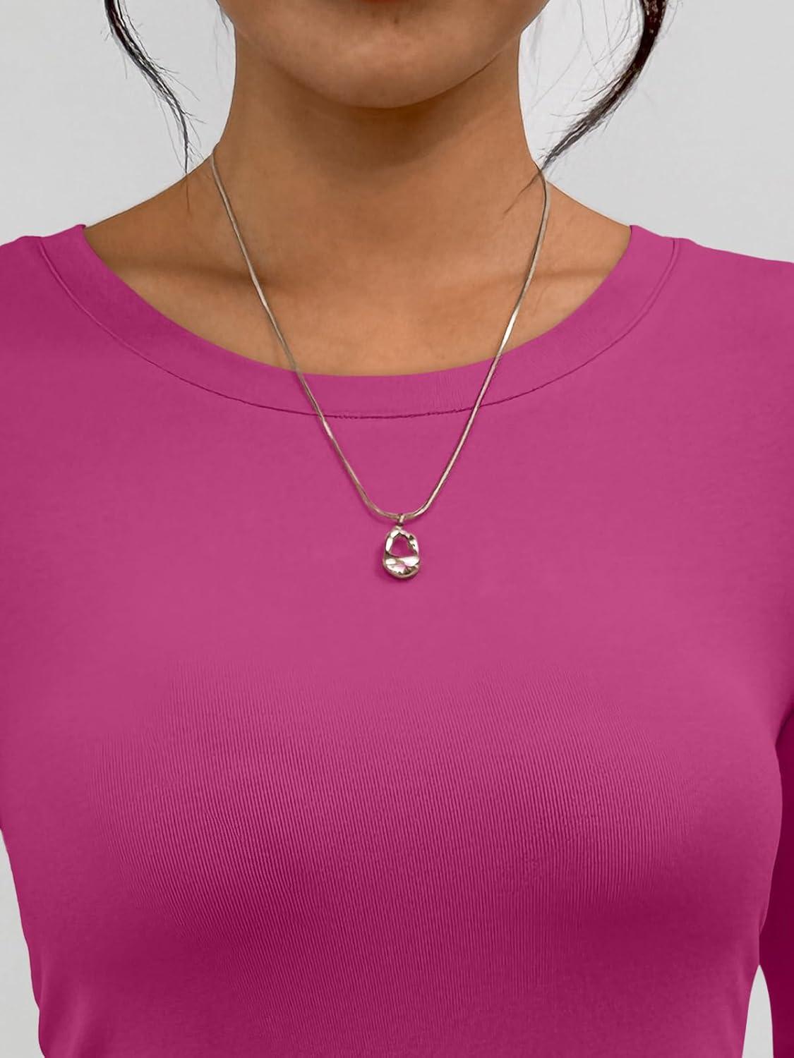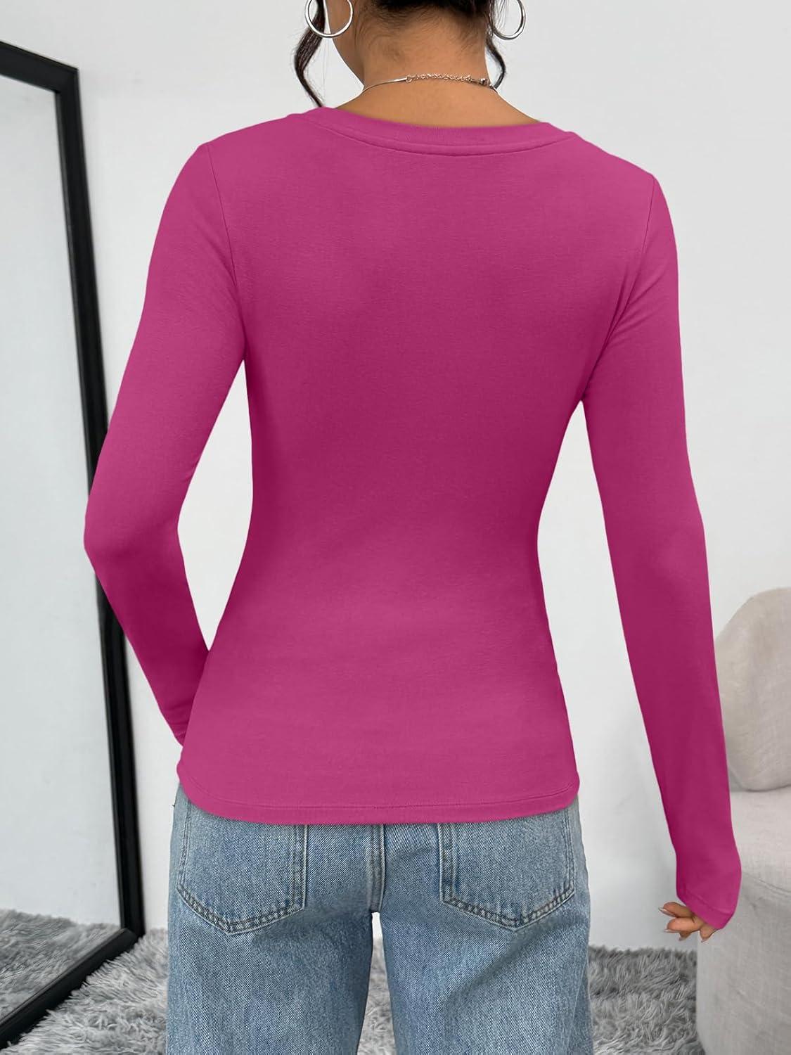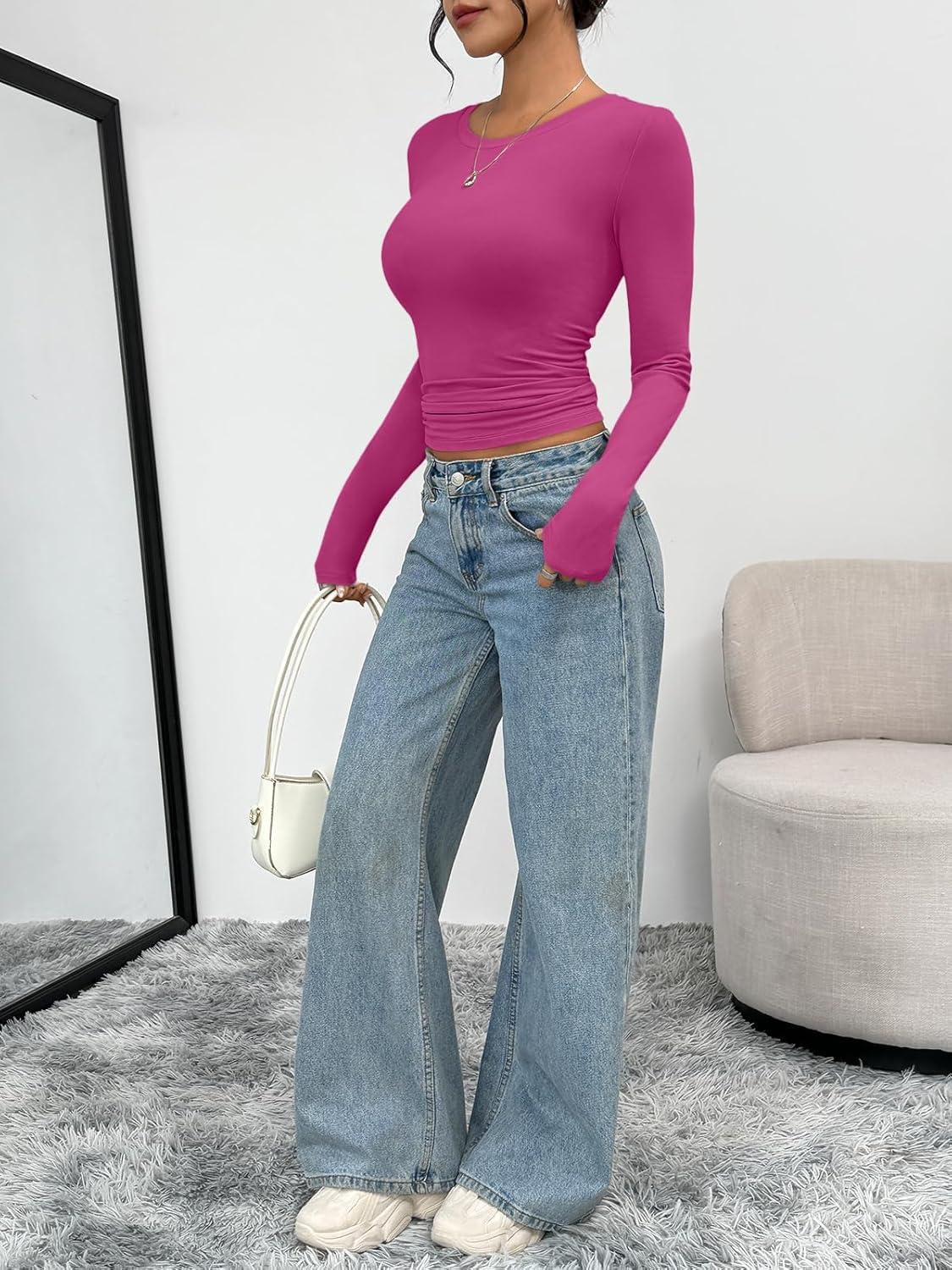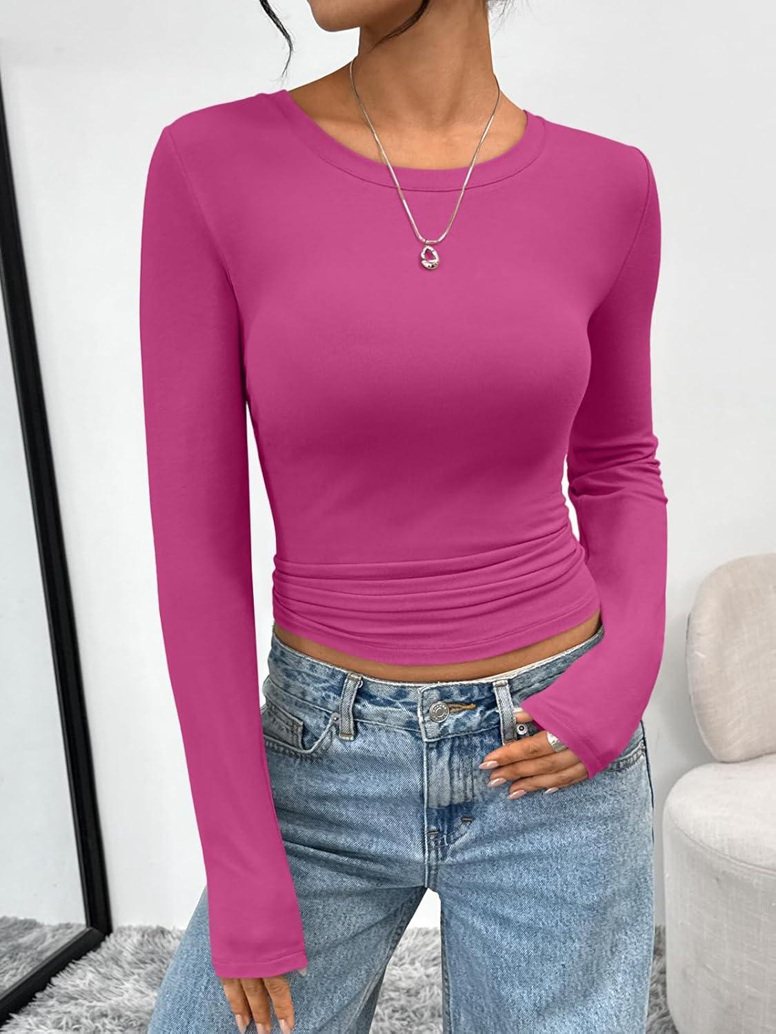 Trendy Queen Womens Long Sleeve T-Shirts Basic Crop Tops 2026 Spring Fashion Outfits Going Out Winter Clothes(Rosered)
