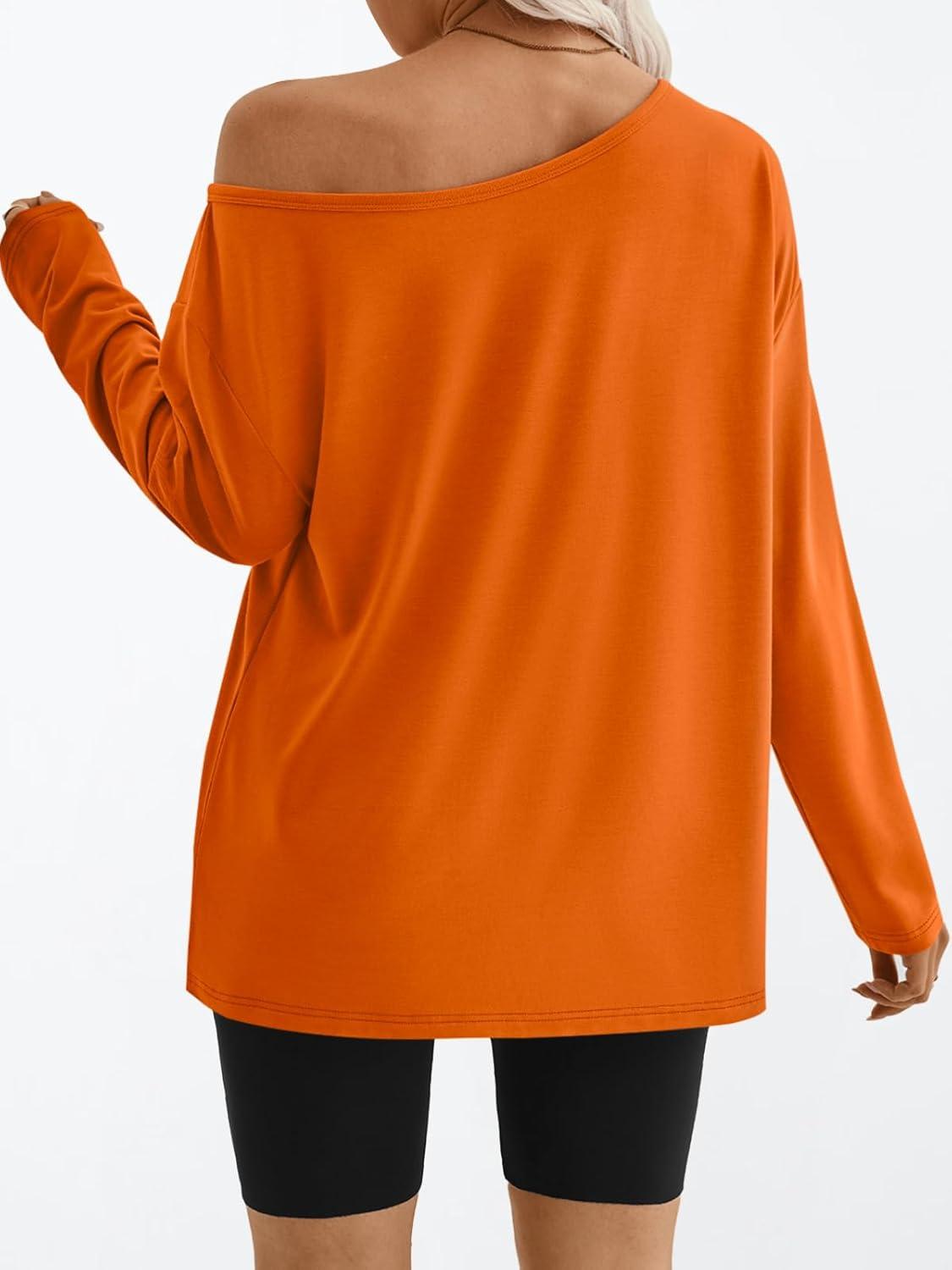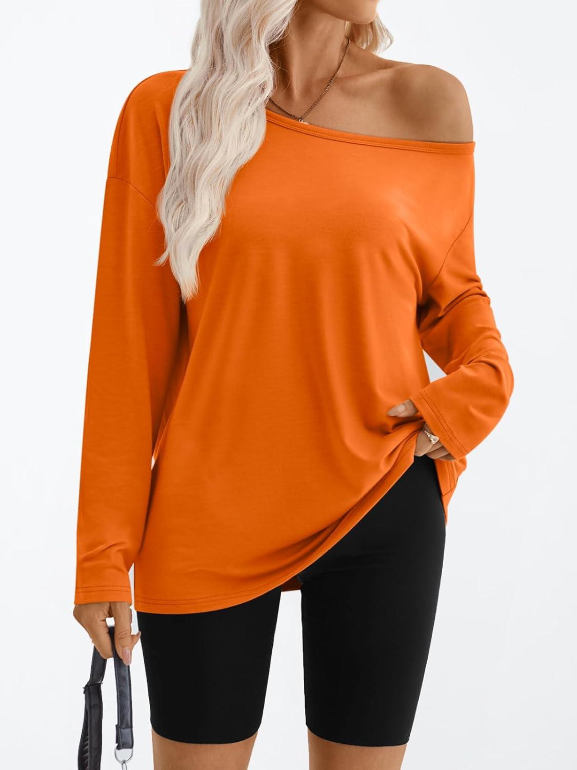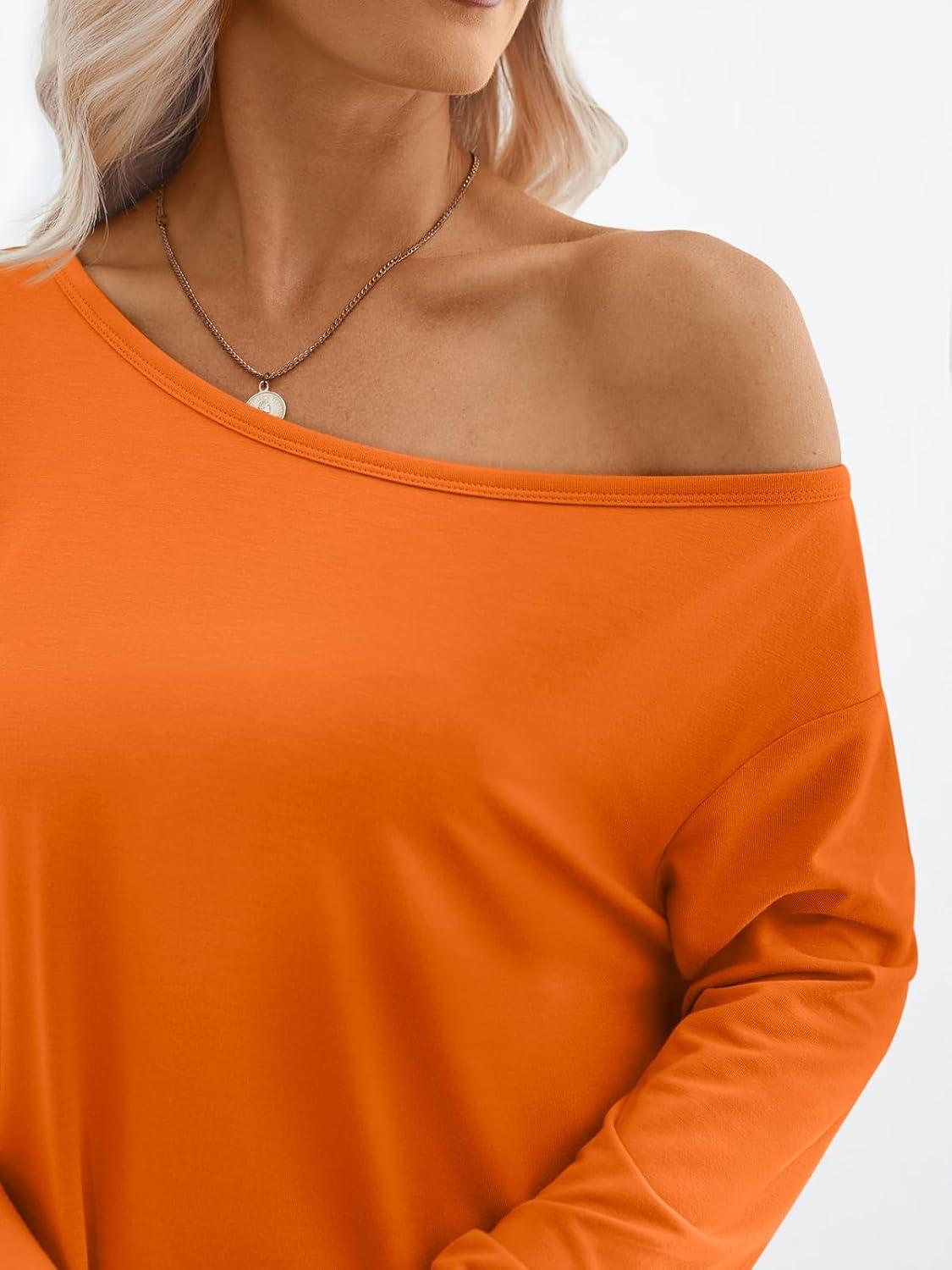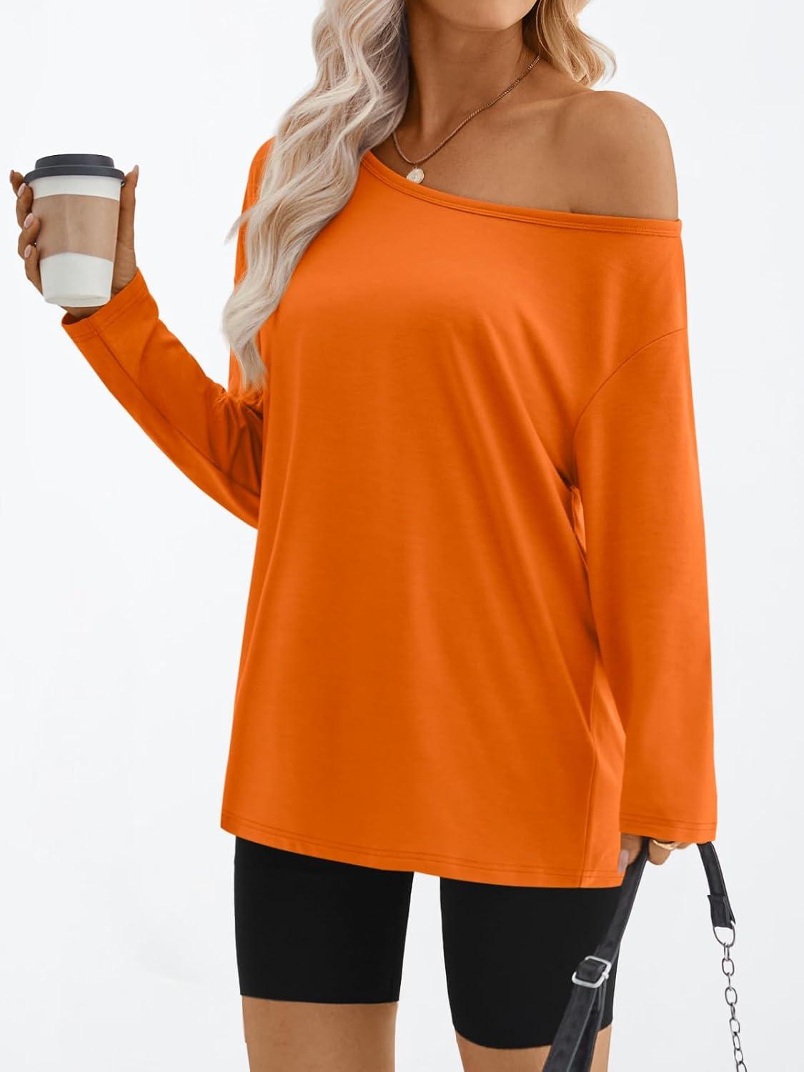 Trendy Queen Womens Off The Shoulder Tops Oversized Tshirts Long Sleeve 2025 Casual Basic Tees(Orange)