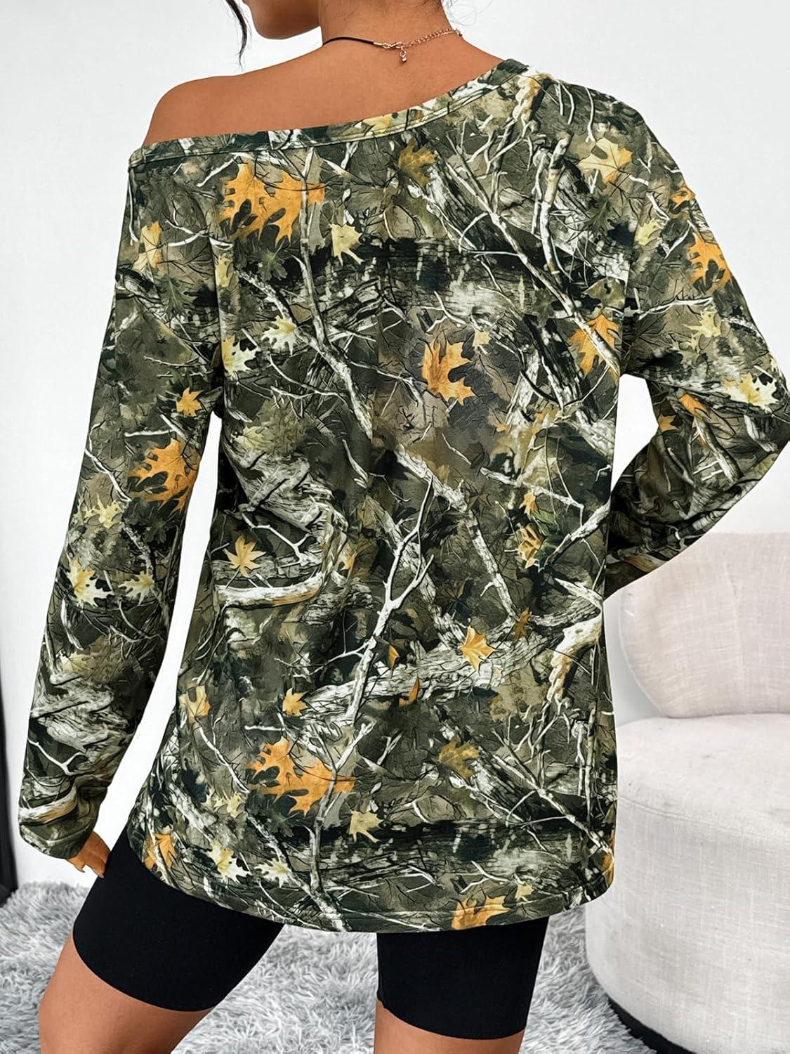 Trendy Queen Womens Off The Shoulder Tops Oversized Tshirts Long Sleeve 2025 Casual Basic Tees(Printed2)