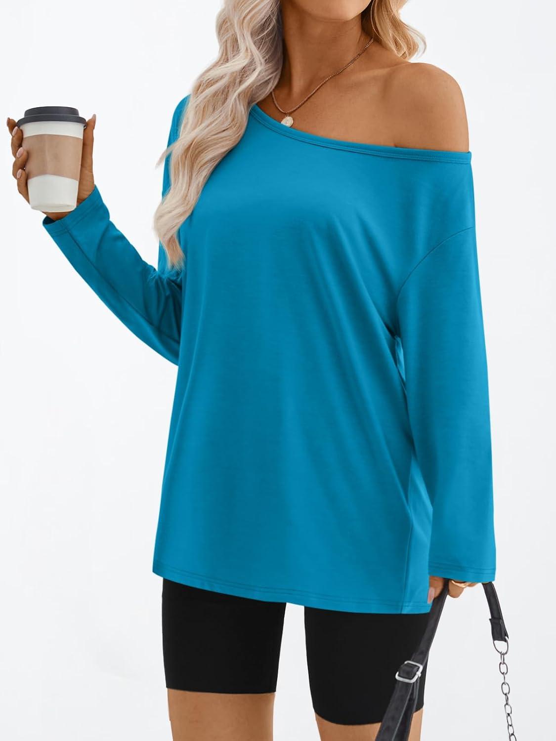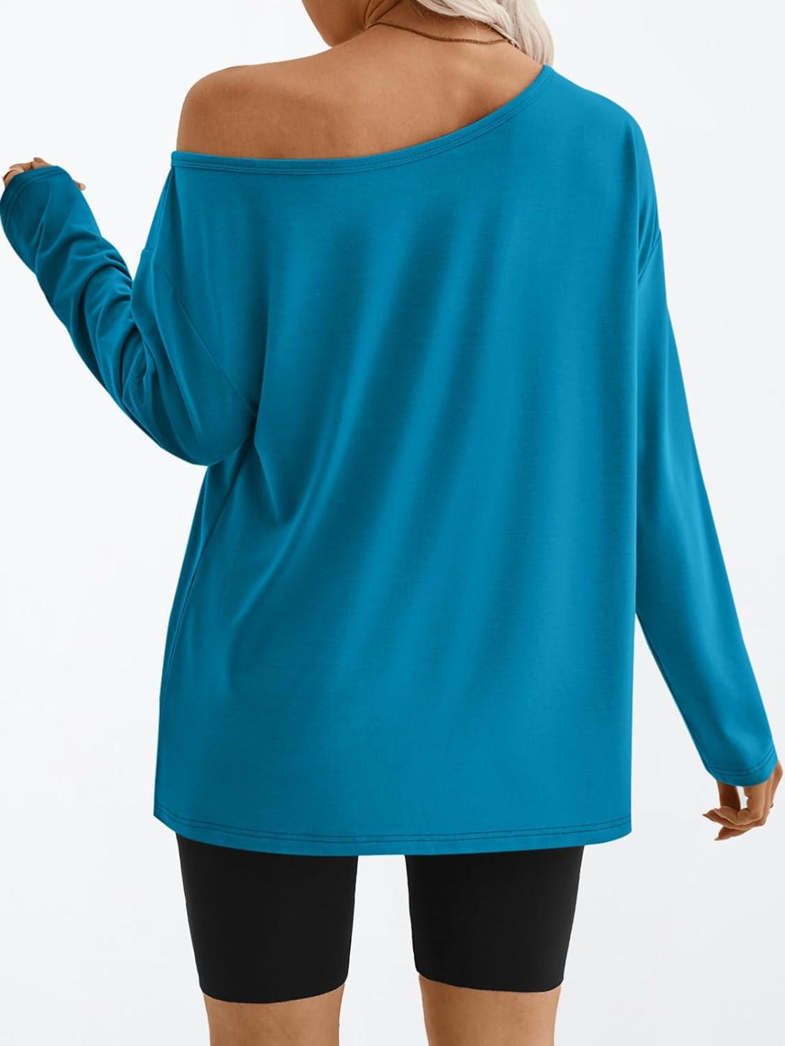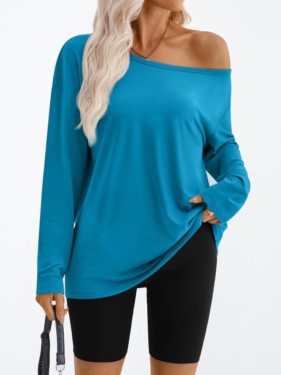 Trendy Queen Womens Off The Shoulder Tops Oversized Tshirts Long Sleeve 2025 Casual Basic Tees(Royal Blue)