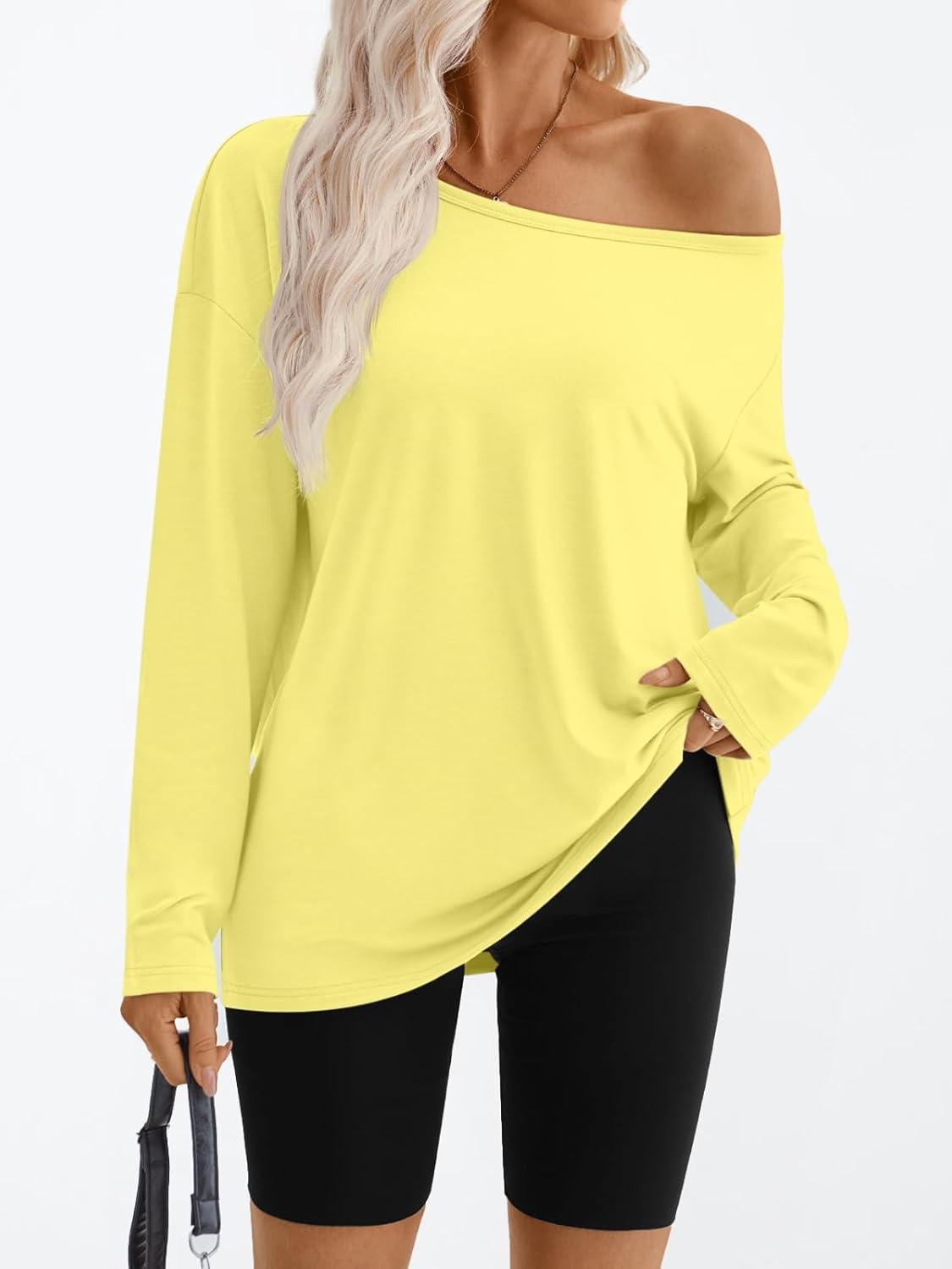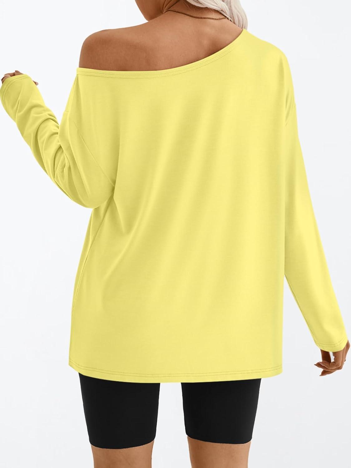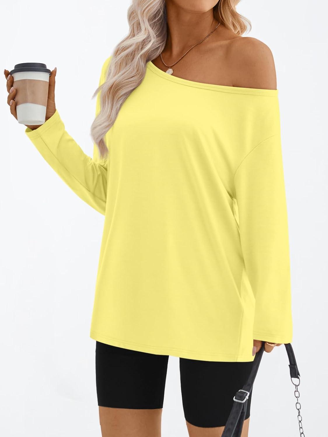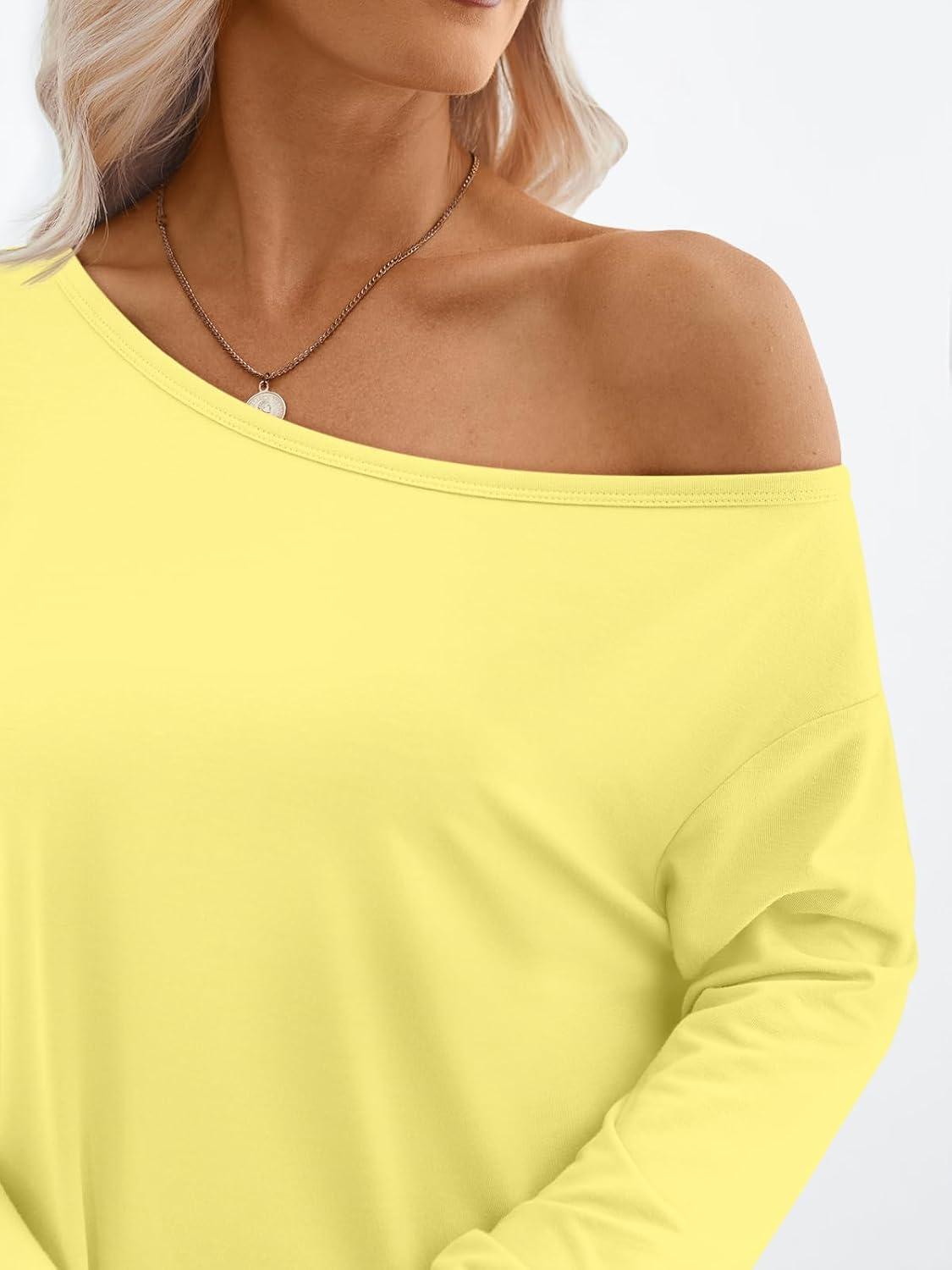 Trendy Queen Womens Off The Shoulder Tops Oversized Tshirts Long Sleeve 2025 Casual Basic Tees(Yellow)