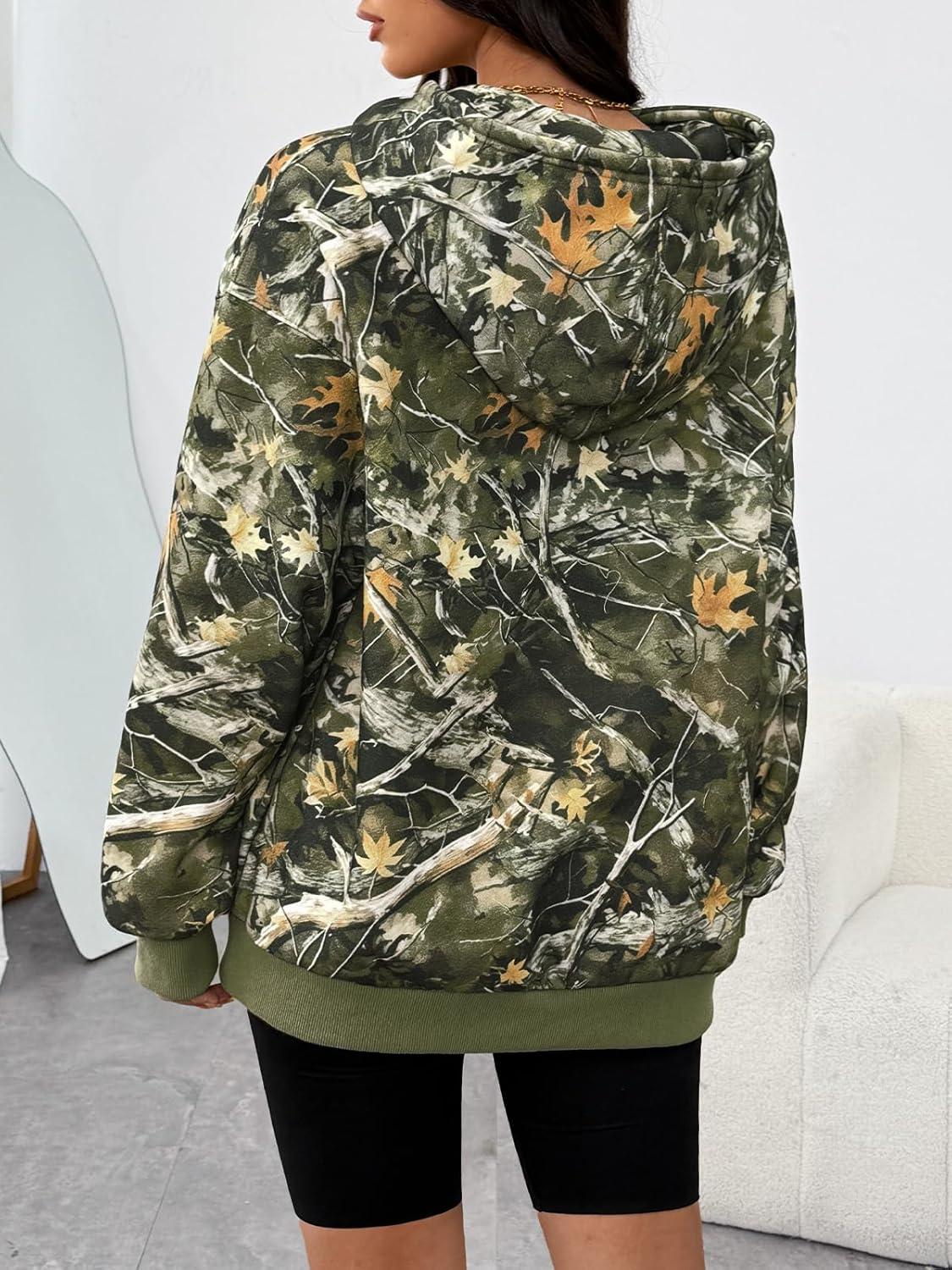 Trendy Queen Womens Oversized Hoodies Fleece Sweatshirts Fall Fashion Pullover Sweaters Winter Clothes(Camo Darkgreen)