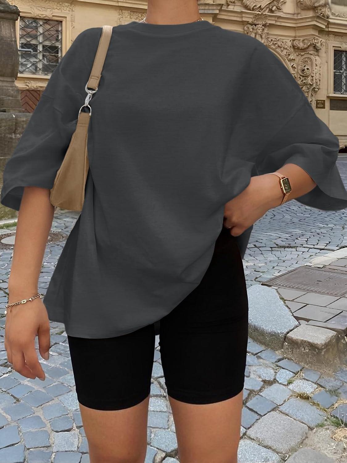 Trendy Queen Womens Oversized Summer T Shirts Plus Size Batwing Cute Casual Tops Short Sleeves Fashion Workout Clothes(Blackgrey)