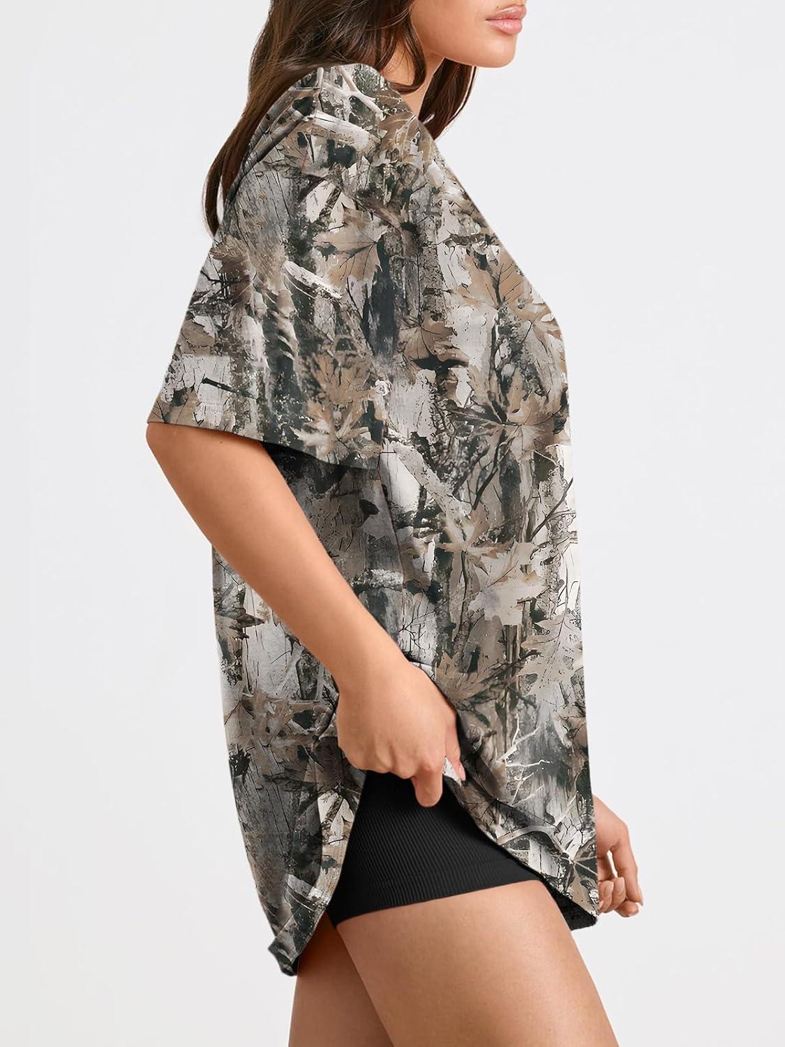 Trendy Queen Womens Oversized Summer T Shirts Plus Size Batwing Cute Casual Tops Short Sleeves Fashion Workout Clothes(Camo Dark)
