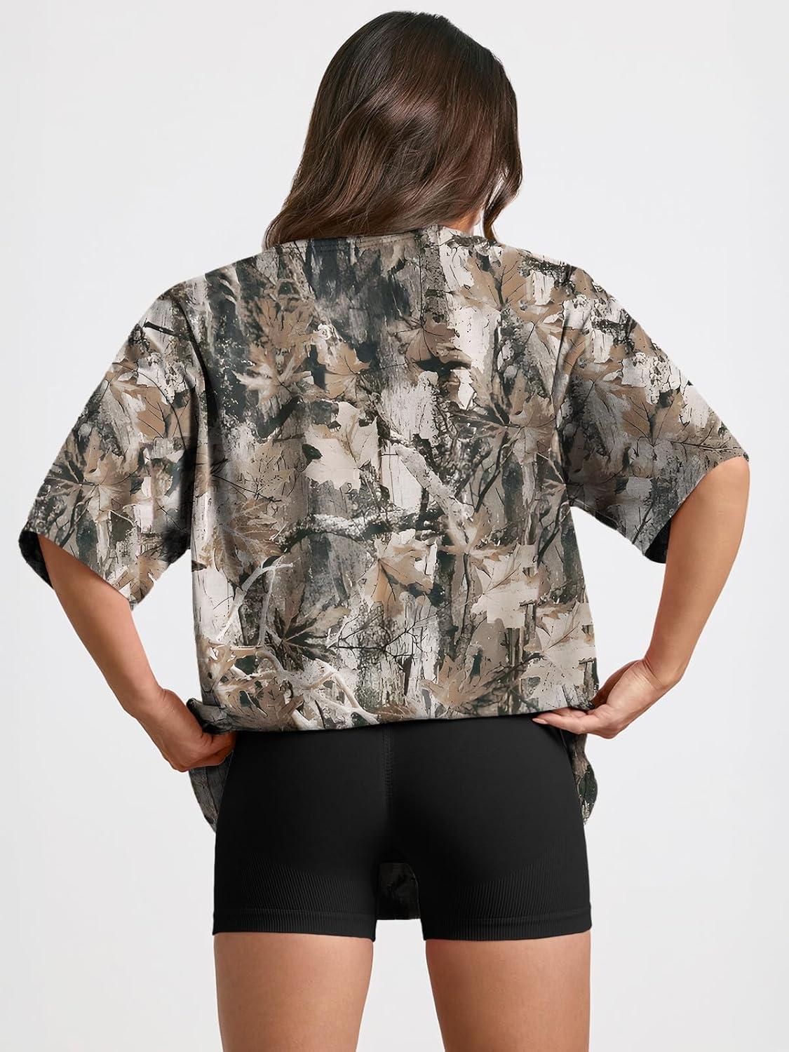 imageTrendy Queen Womens Oversized Summer T Shirts Plus Size Batwing Cute Casual Tops Short Sleeves Fashion Workout ClothesCamo Brown