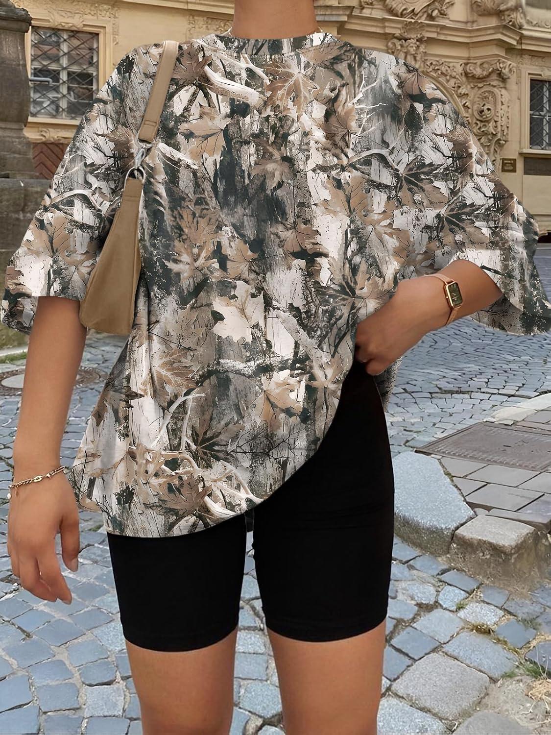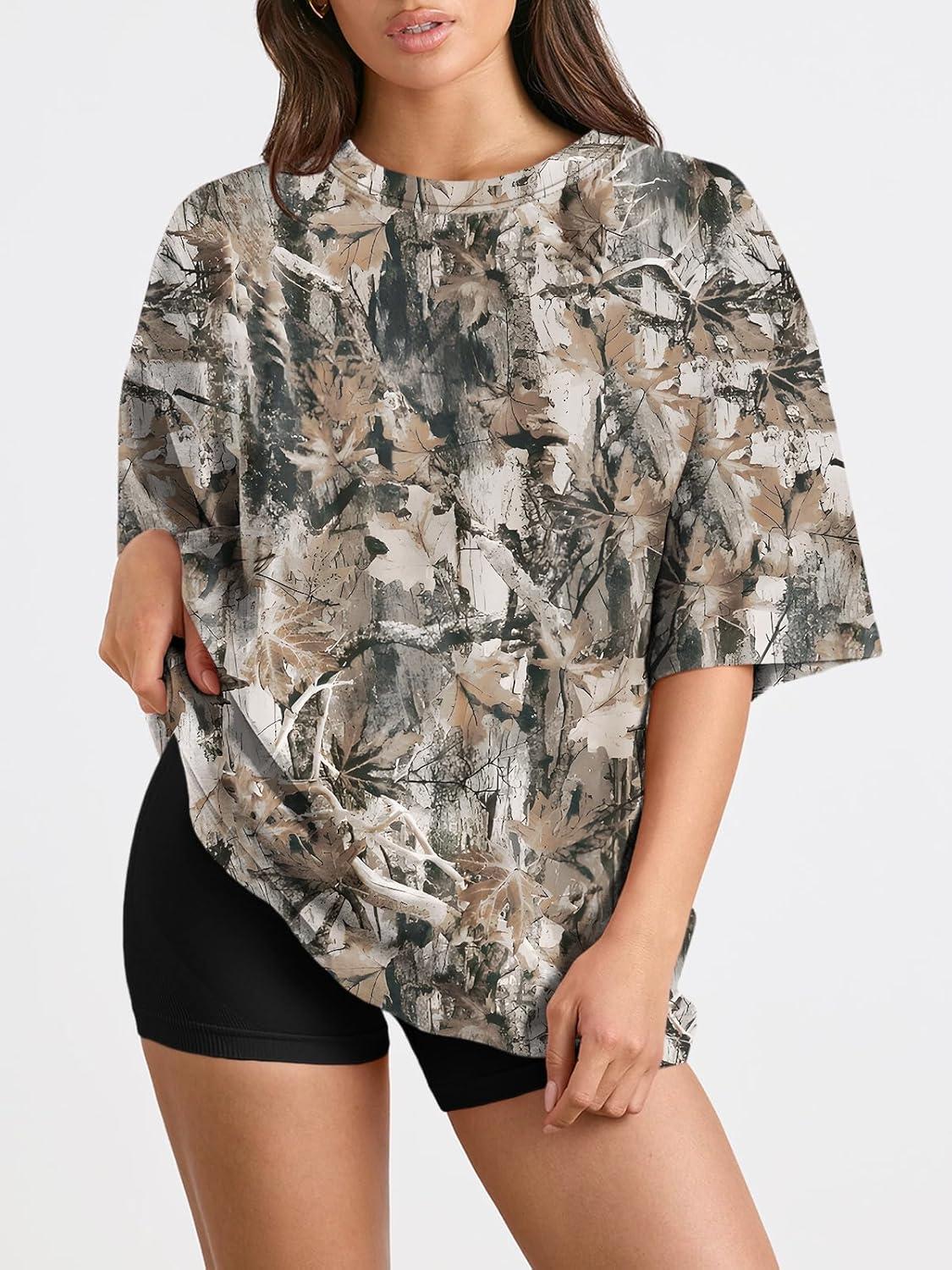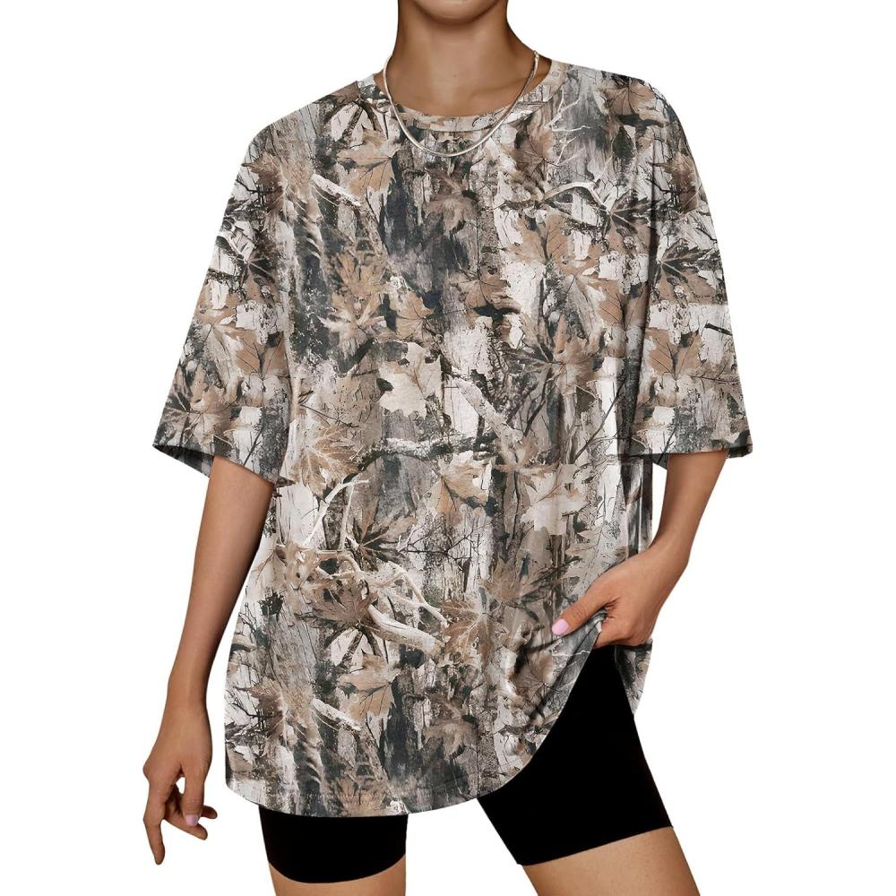 Trendy Queen Womens Oversized Summer T Shirts Plus Size Batwing Cute Casual Tops Short Sleeves Fashion Workout Clothes(Camo Brown)