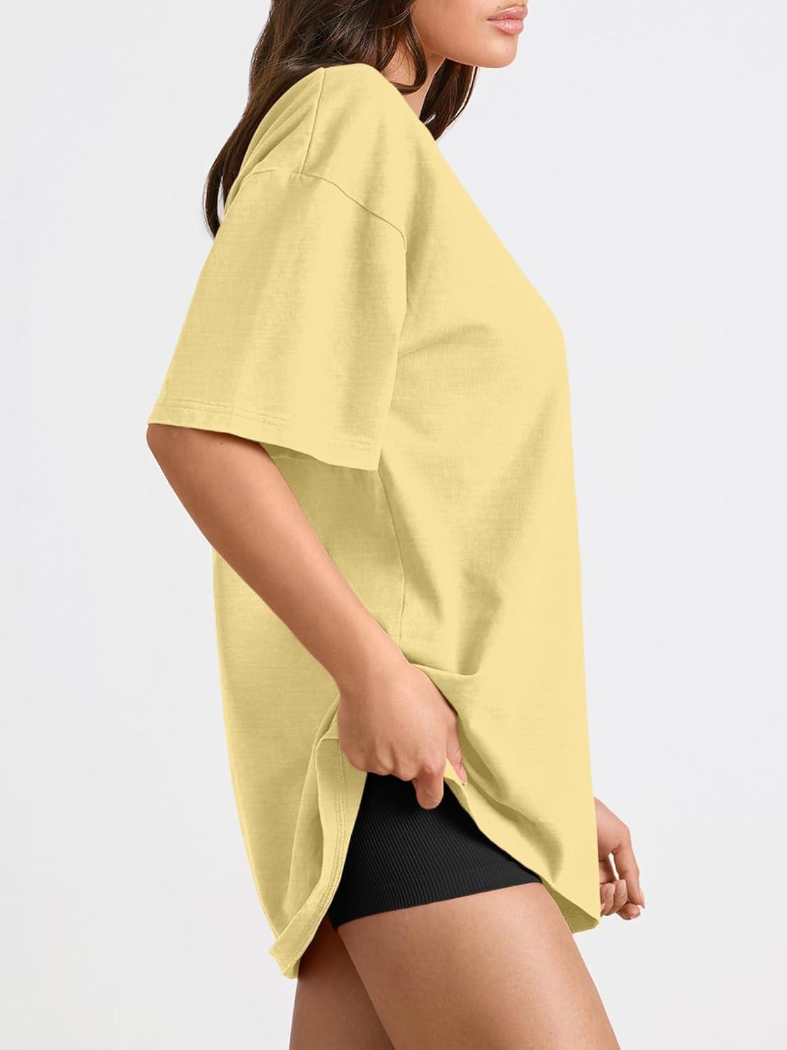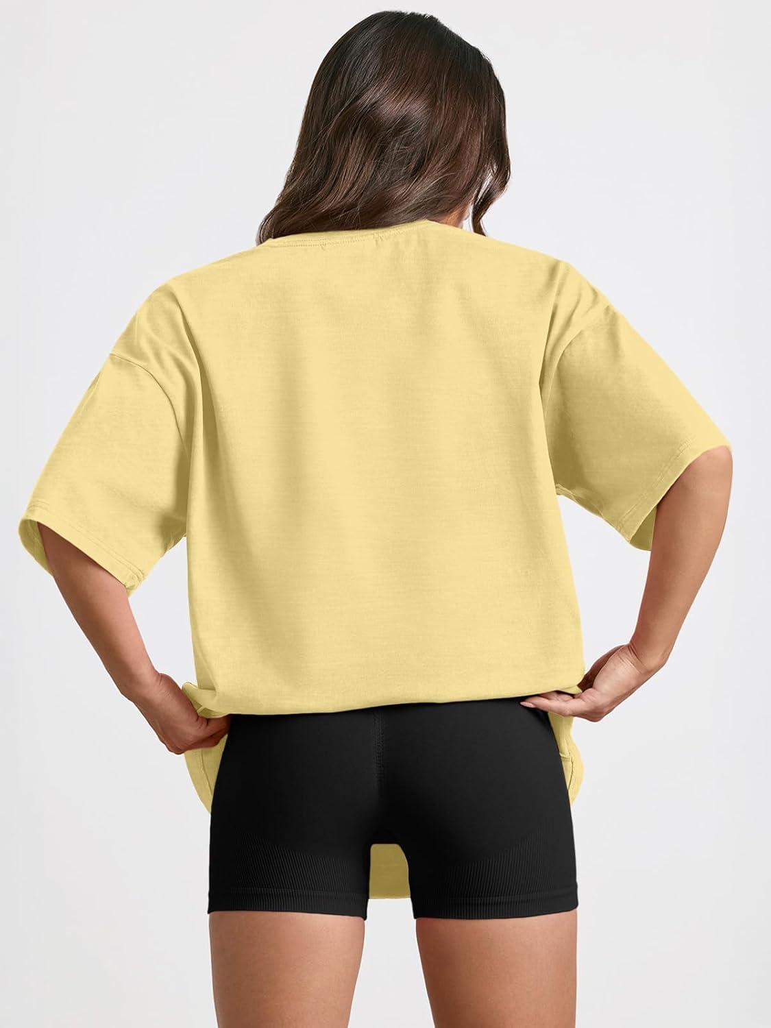 imageTrendy Queen Womens Oversized Summer T Shirts Plus Size Batwing Cute Casual Tops Short Sleeves Fashion Workout ClothesLemonyellow