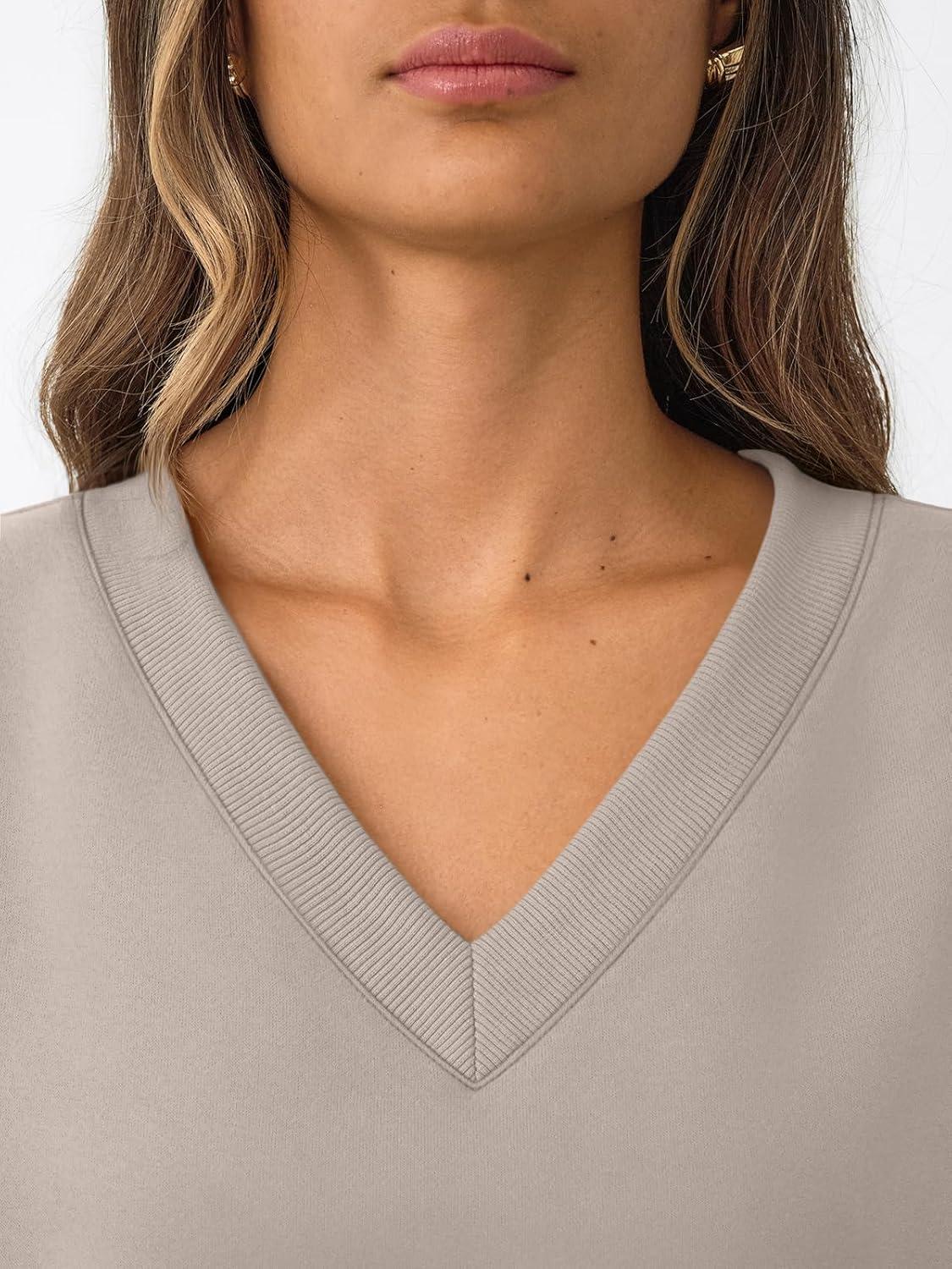 Trendy Queen Womens Oversized Sweatshirts Fall Fashion V Neck Hoodies Loose Fit Winter Outfits Teen Girl Clothes 2025(Grey)