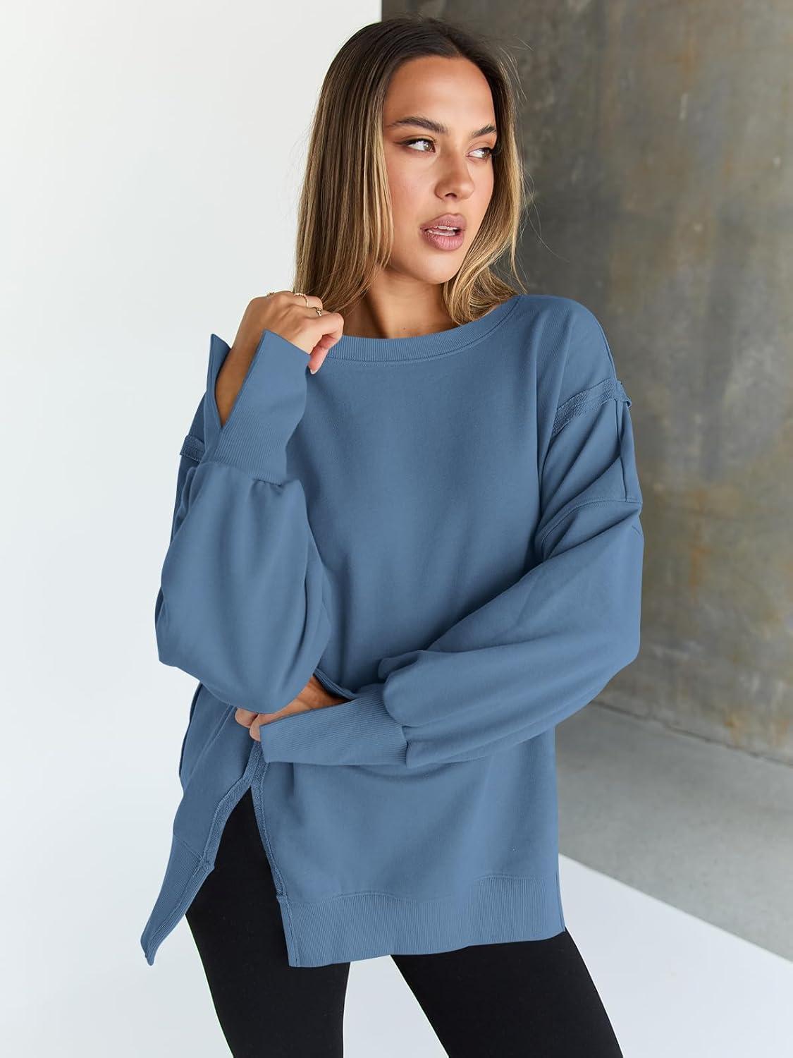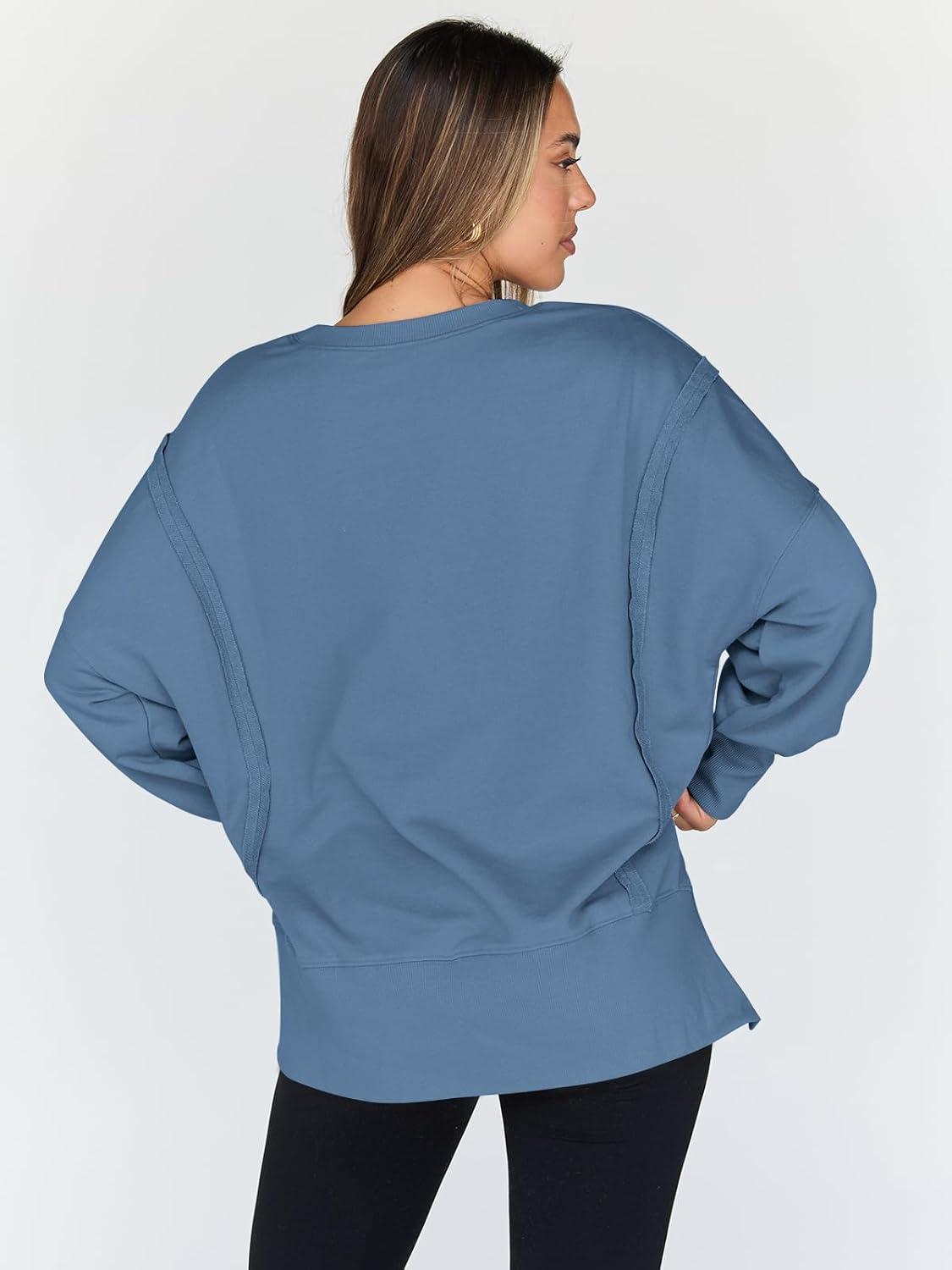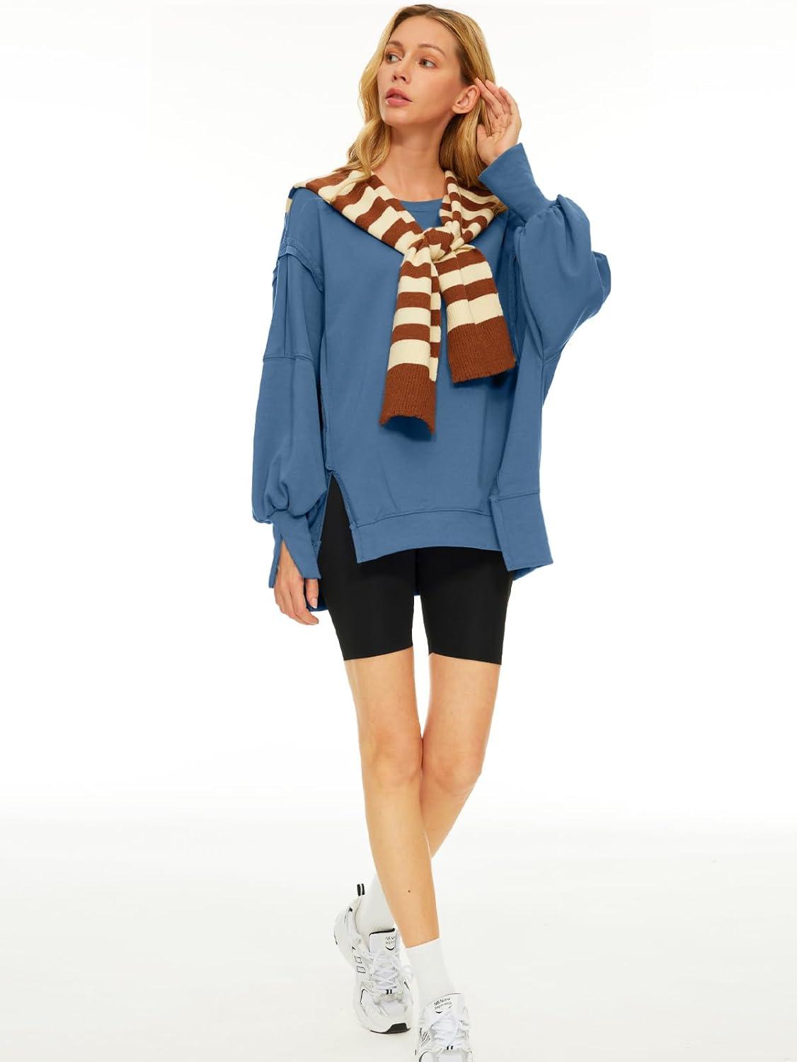 Trendy Queen Womens Oversized Sweatshirts Hoodies Crewneck Shirts Fall Outfits Teen Girls Y2k Winter Clothes(Greyblue)