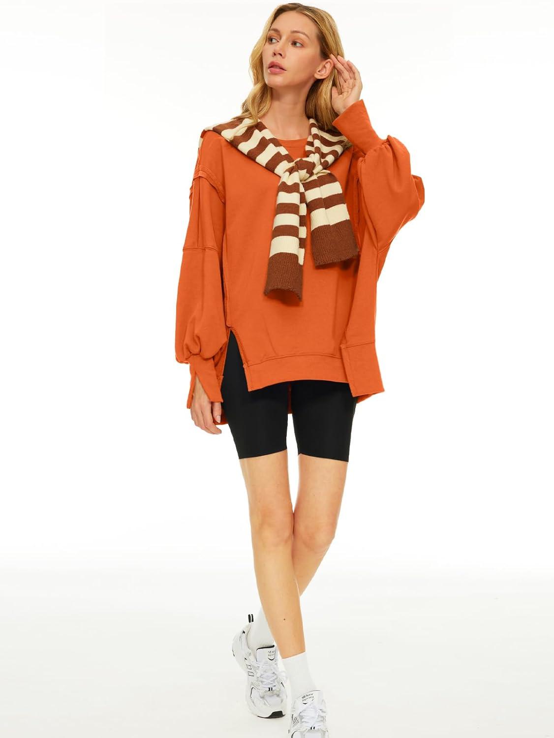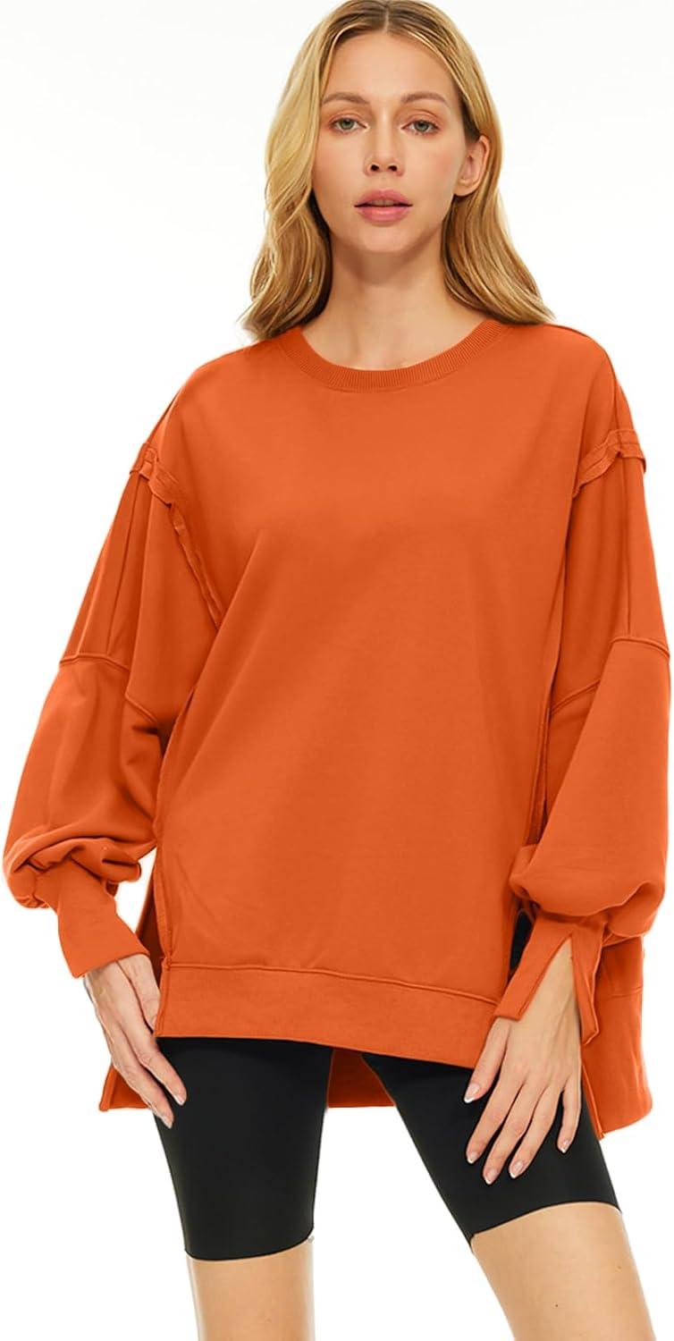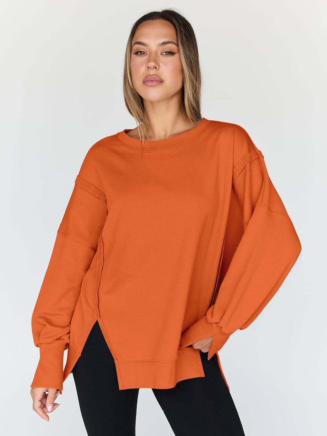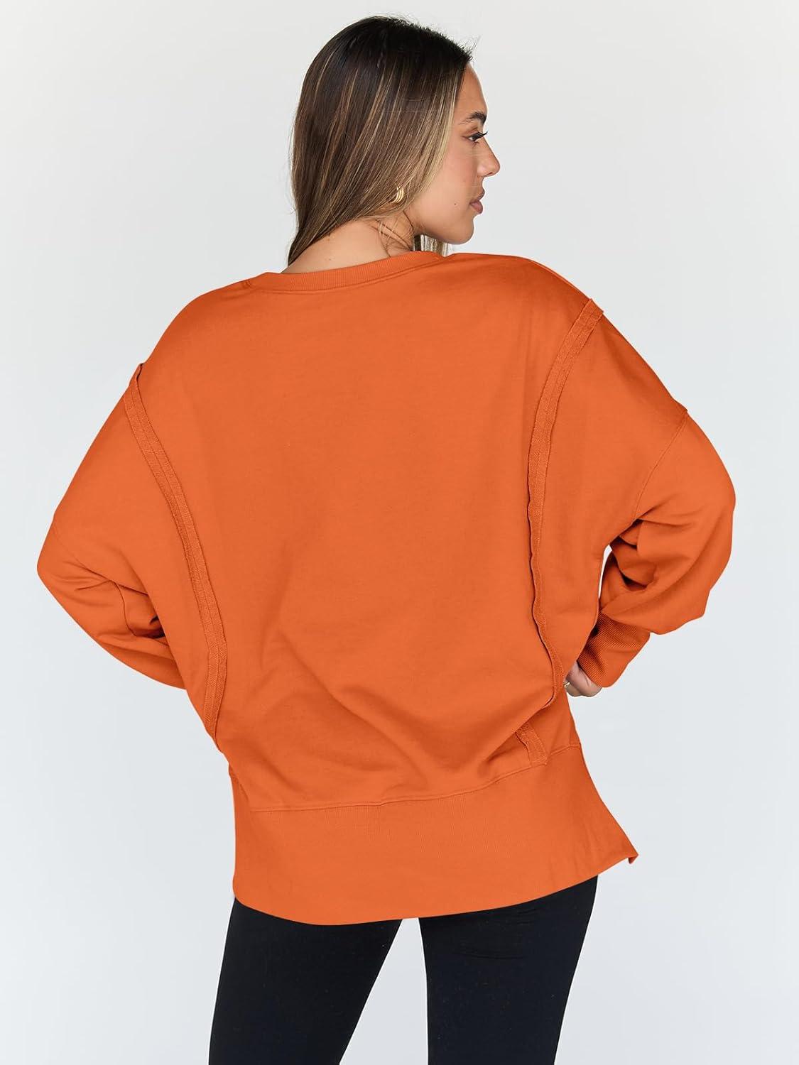 Trendy Queen Womens Oversized Sweatshirts Hoodies Crewneck Shirts Fall Outfits Teen Girls Y2k Winter Clothes(Orange)