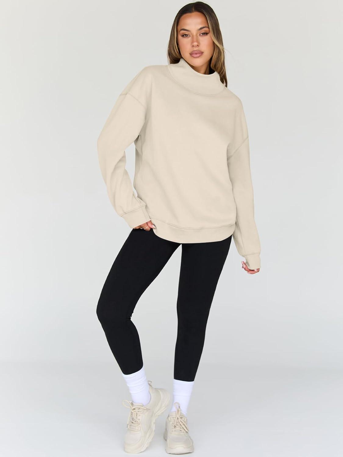 Trendy Queen Womens Oversized Sweatshirts Turtleneck Pullover Long Sleeve Hoodies Tops Fall Fashion Outfits 2025 Clothes(Beige)