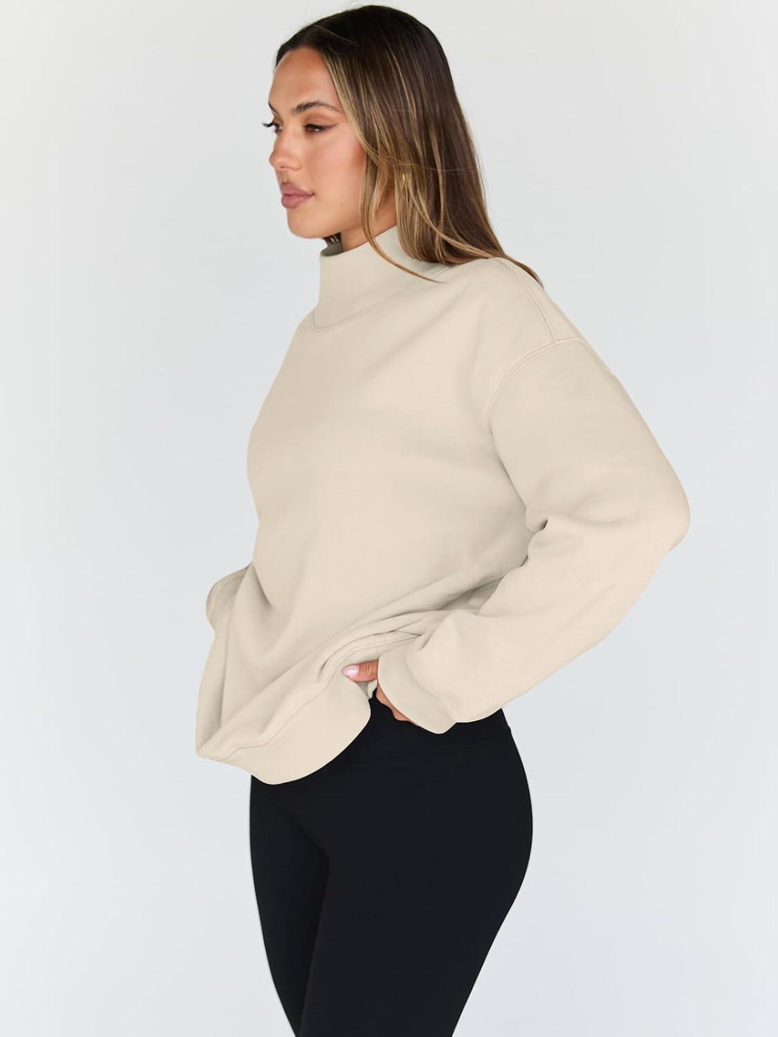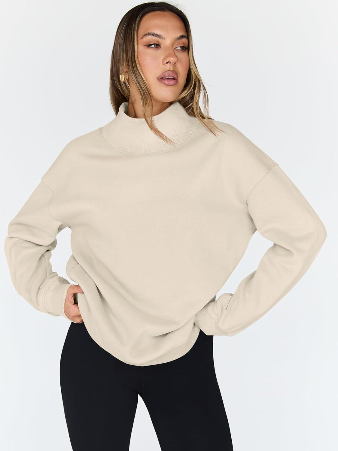 imageTrendy Queen Womens Oversized Sweatshirts Turtleneck Pullover Long Sleeve Hoodies Tops Fall Fashion Outfits 2025 ClothesBeige