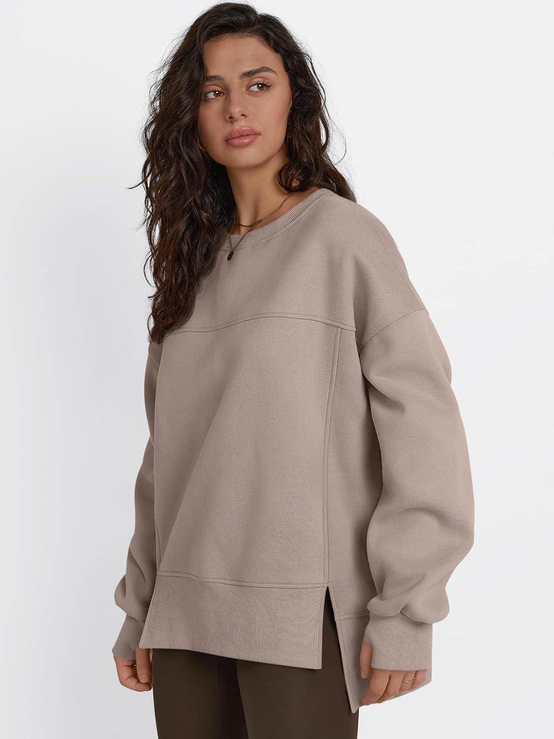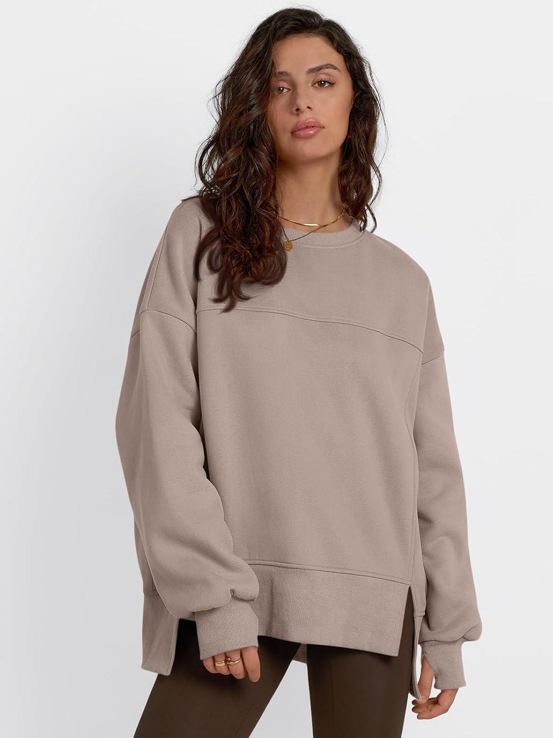 Trendy Queen Womens Side Slit Sweatshirts Casual Oversized Crewneck Long Sleeve Pullover Fall Fashion 2025(Coffee Grey)