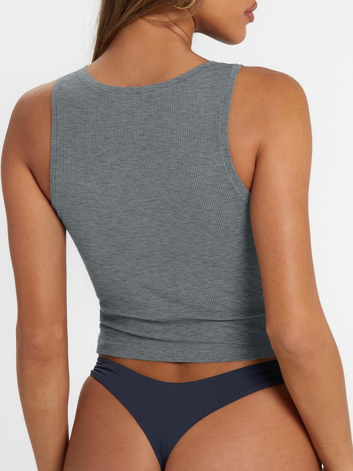 Trendy Queen Women’s Summer Square Neck Tank Tops Workout Cropped Ribbed Summer Camisole Sleeveless Clothes 2026(Gray)