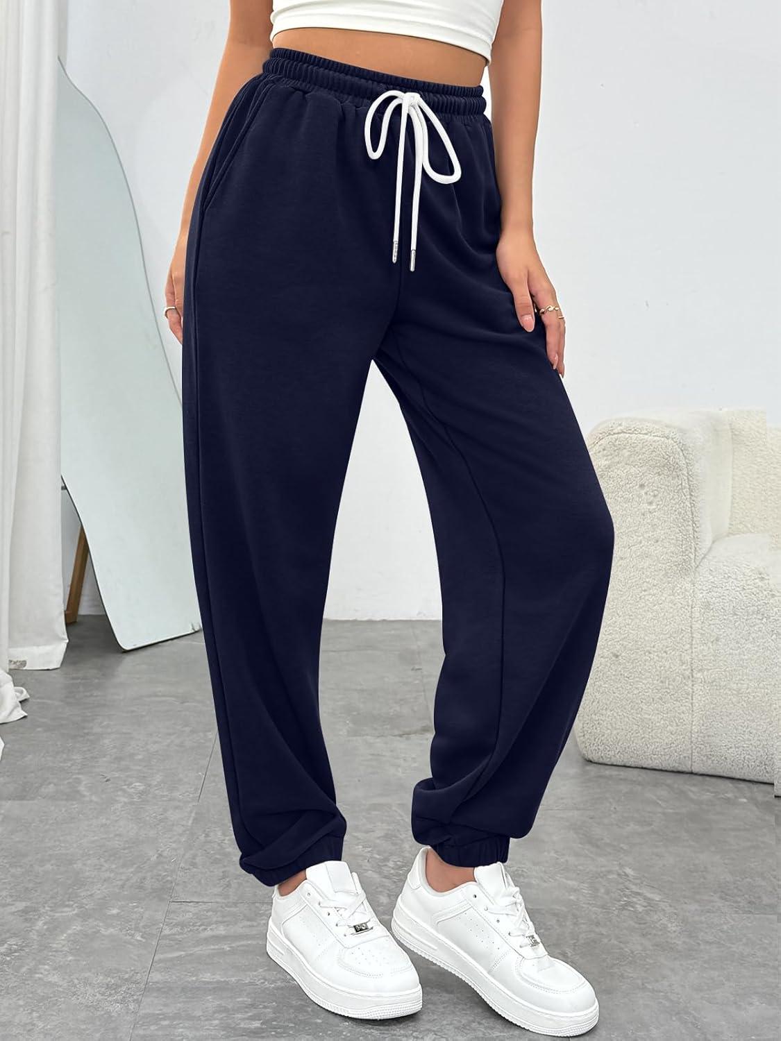 Trendy Queen Women's Sweatpants Athletic Joggers Baggy Pants Lounge Bottom 2026 Fall Fashion with Pockets(Navy)