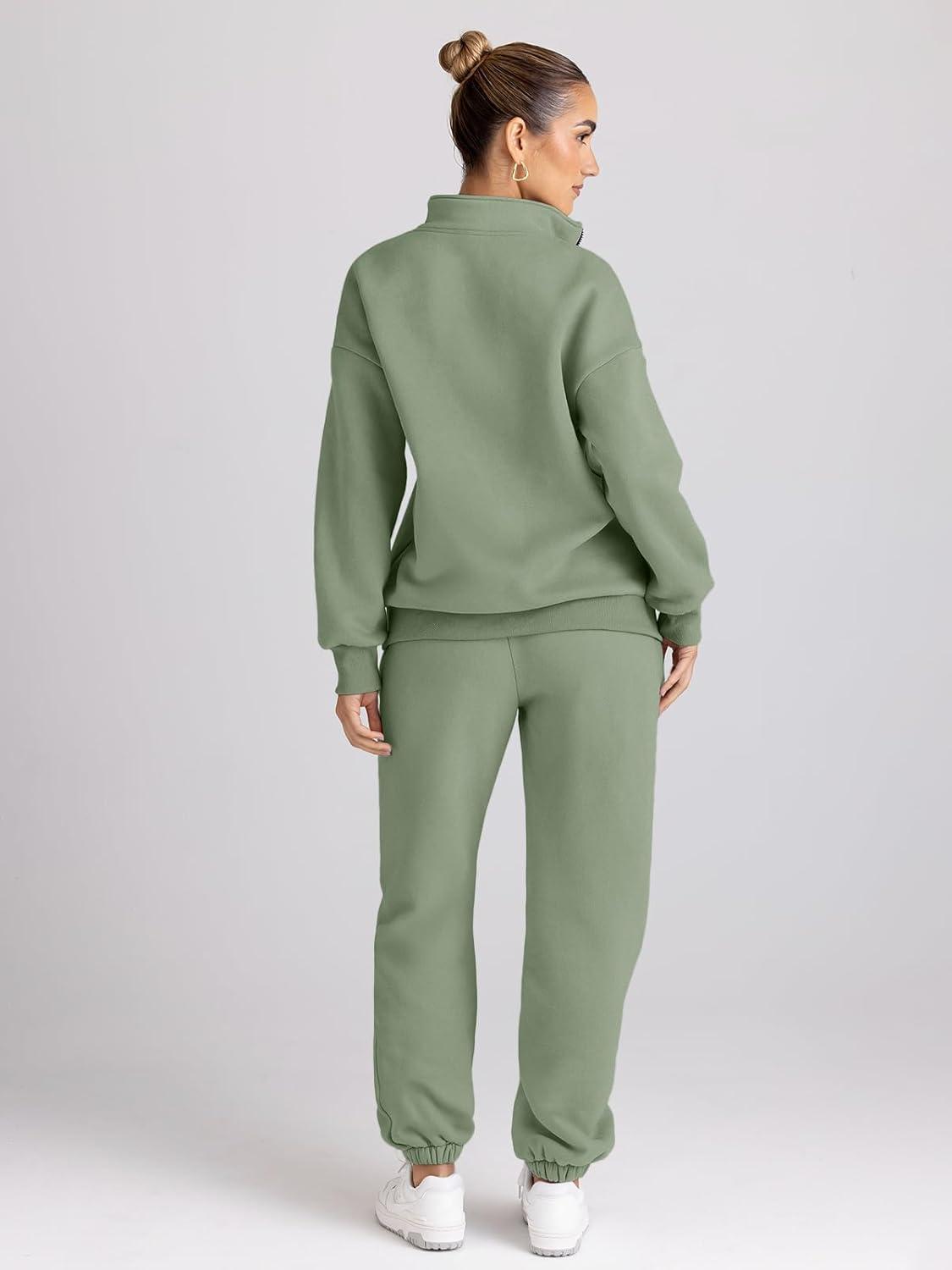 image:imageTrendy Queen Womens Sweatsuits 2 Piece Outfits Fall Lounge Sweat Sets Half Zip Sweatshirts with Baggy SweatpantsGreen