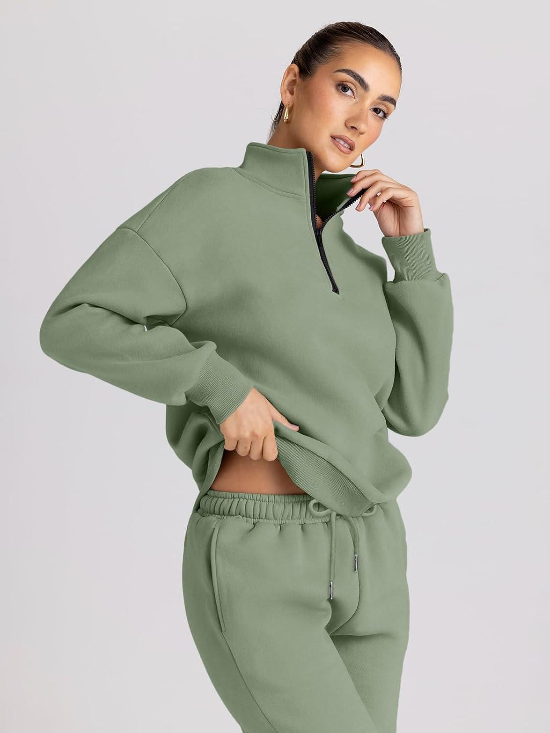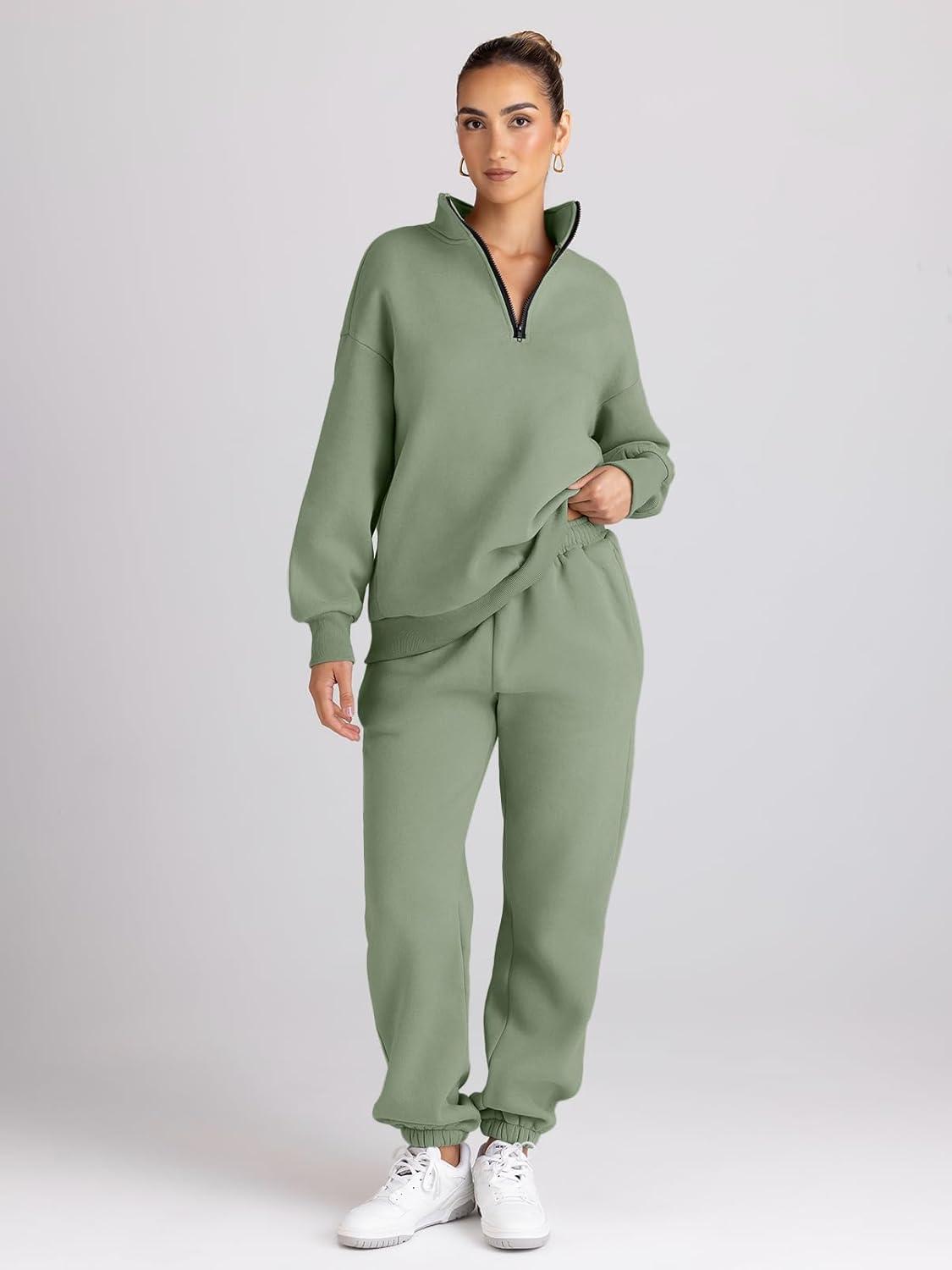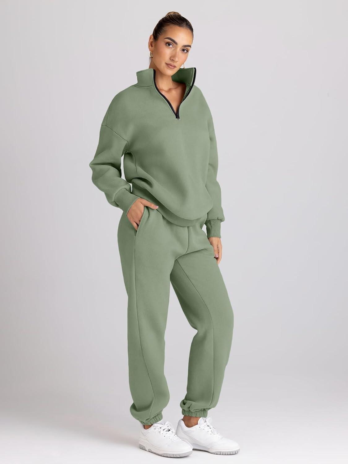 Trendy Queen Womens Sweatsuits 2 Piece Outfits Fall Lounge Sweat Sets Half Zip Sweatshirts with Baggy Sweatpants(Green)