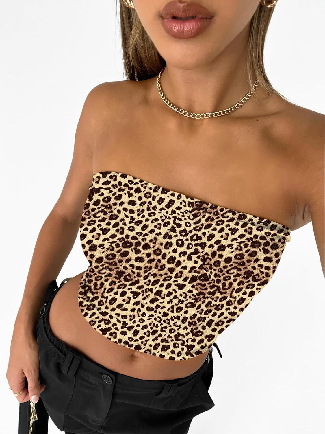 Trendy Queen Womens Tube Tops Strapless Crop Tops Basic Backless Sleeveless Going Out 2026 Spring Outfits Summer Clothes(Leopard)