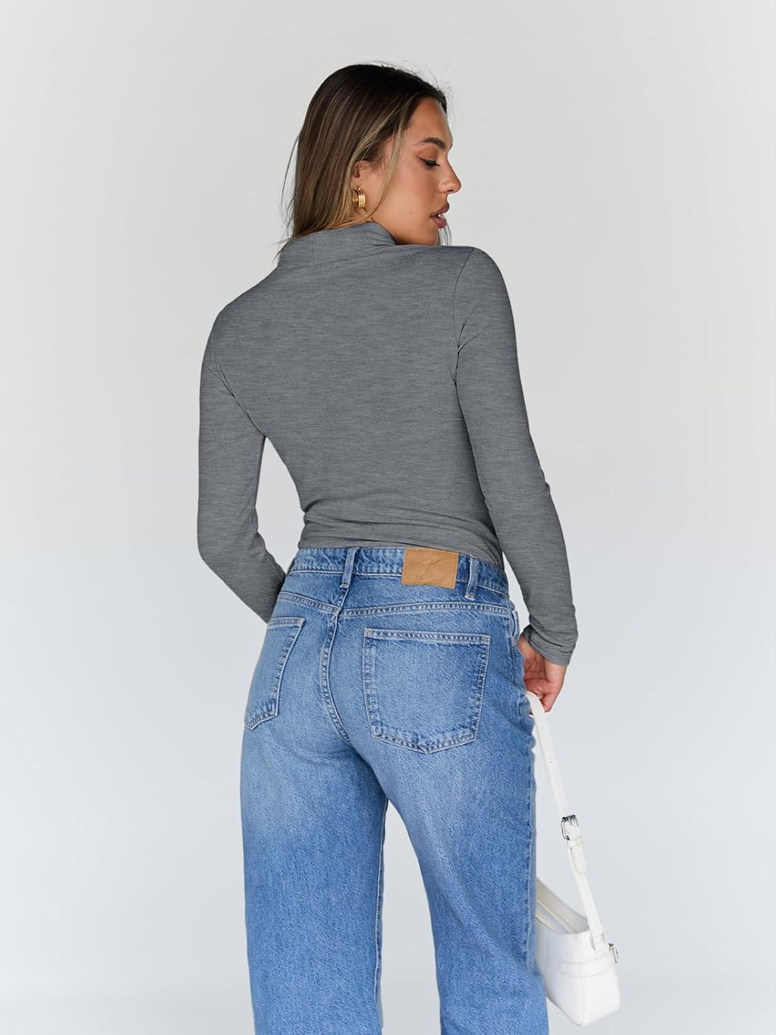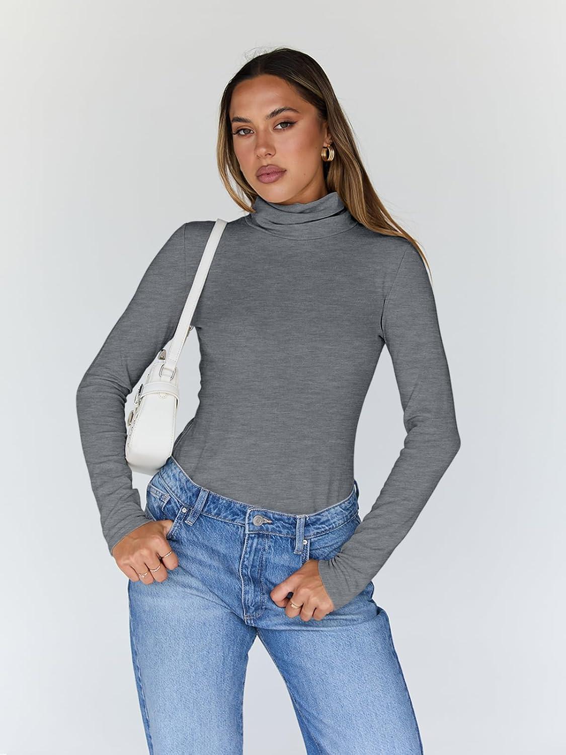 Trendy Queen Women's Turtleneck Long Sleeve Shirts Spring Fashion Basic Thermal Underwear Tops Winter Clothes 2026(Grey)