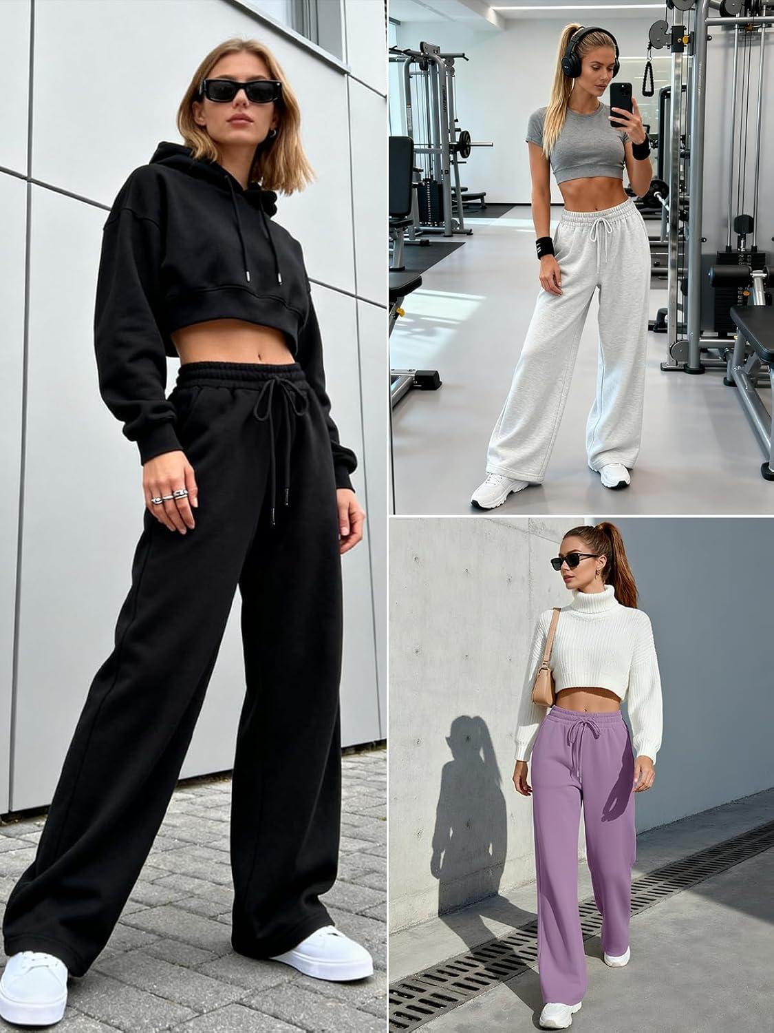 Trendy Queen Womens Wide Leg Fleece Lined Sweatpants Winter Baggy Lounge Travel Pants Fashion Outfits 2025 Joggers Clothes(Darkgrey)