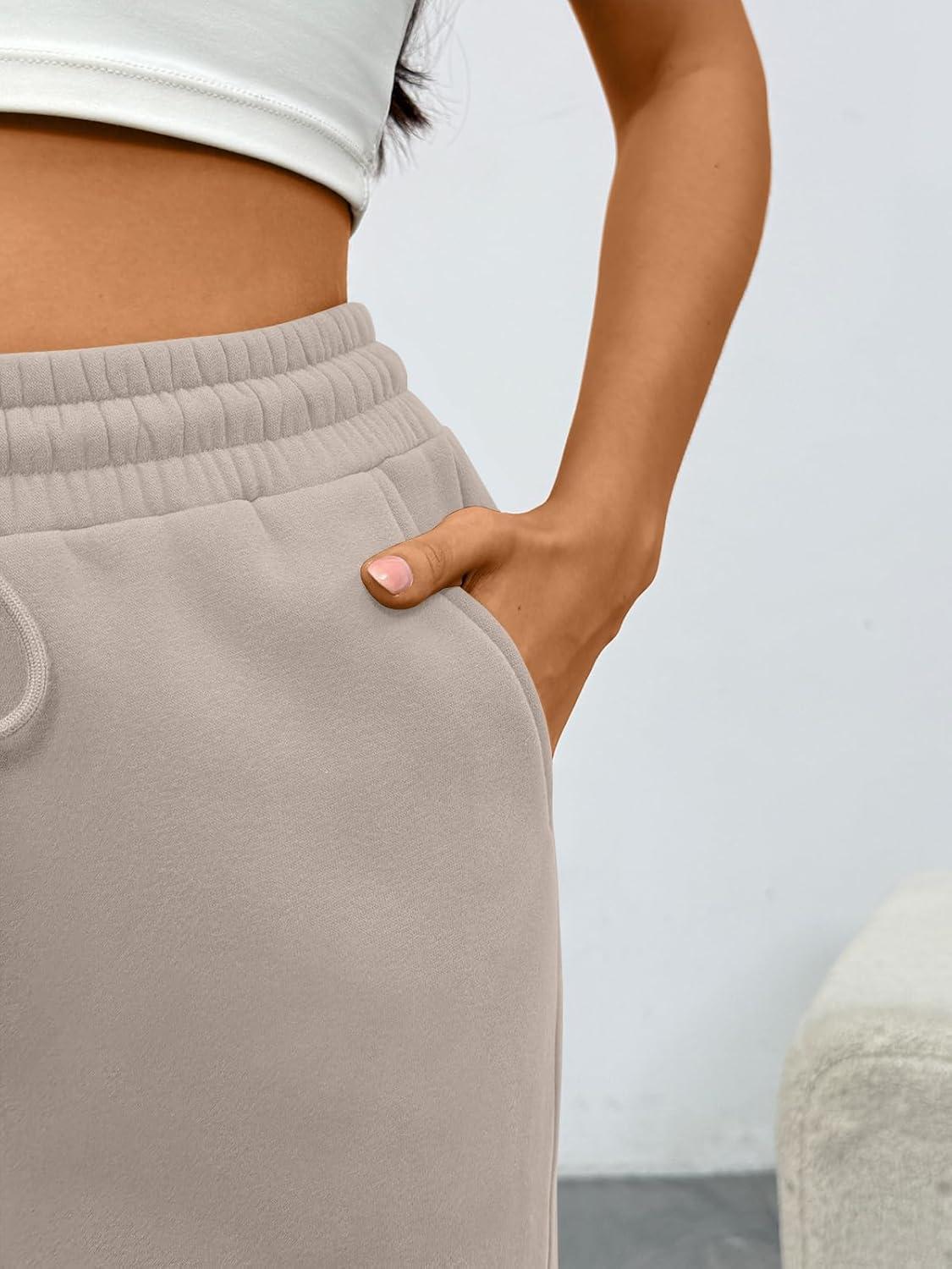Trendy Queen Women‘s Wide Leg Sweatpants, Baggy Barrel Pants with Pockets, High Waist Lounge Joggers for Fall Winter(Coffeegrey)