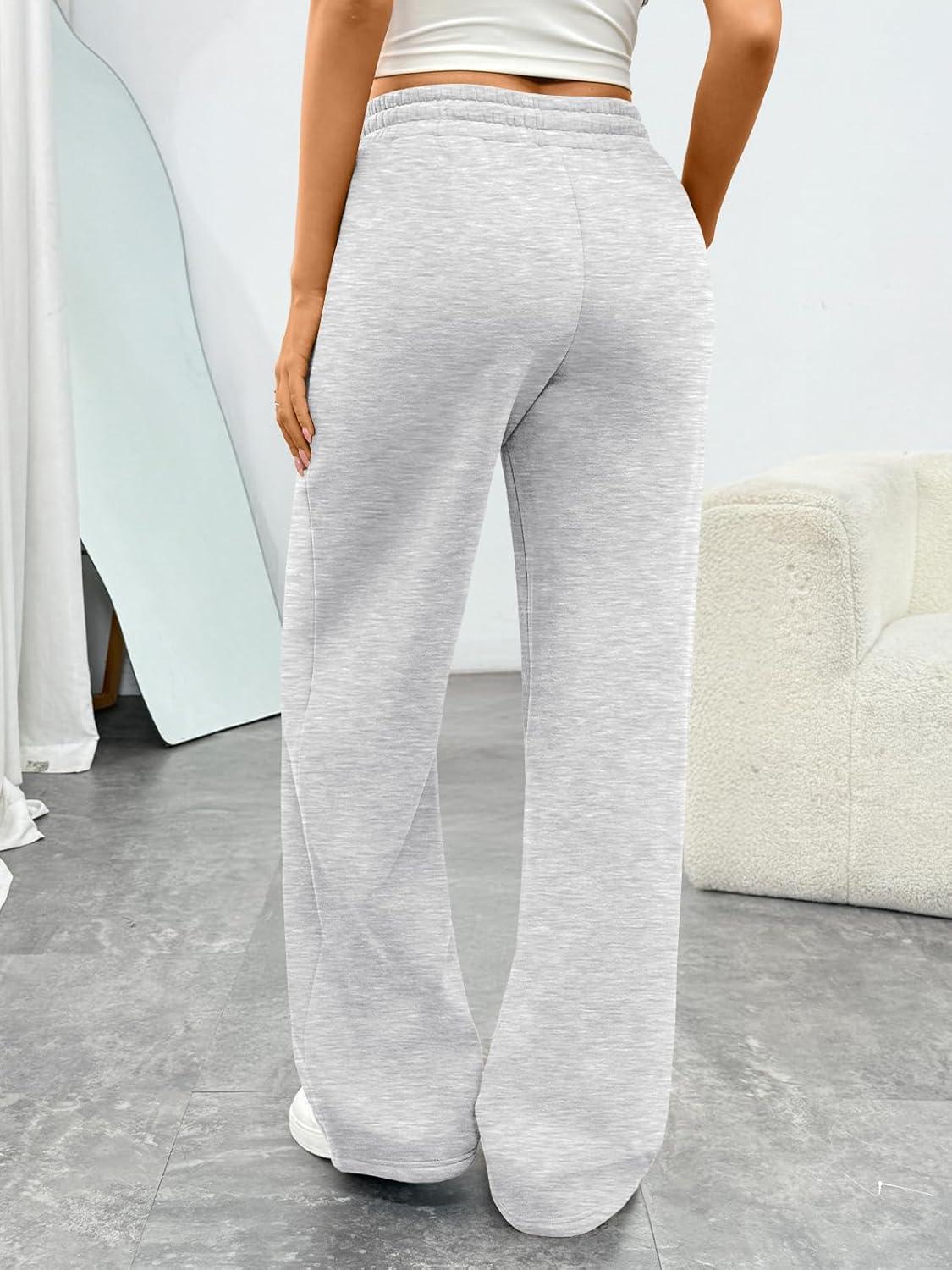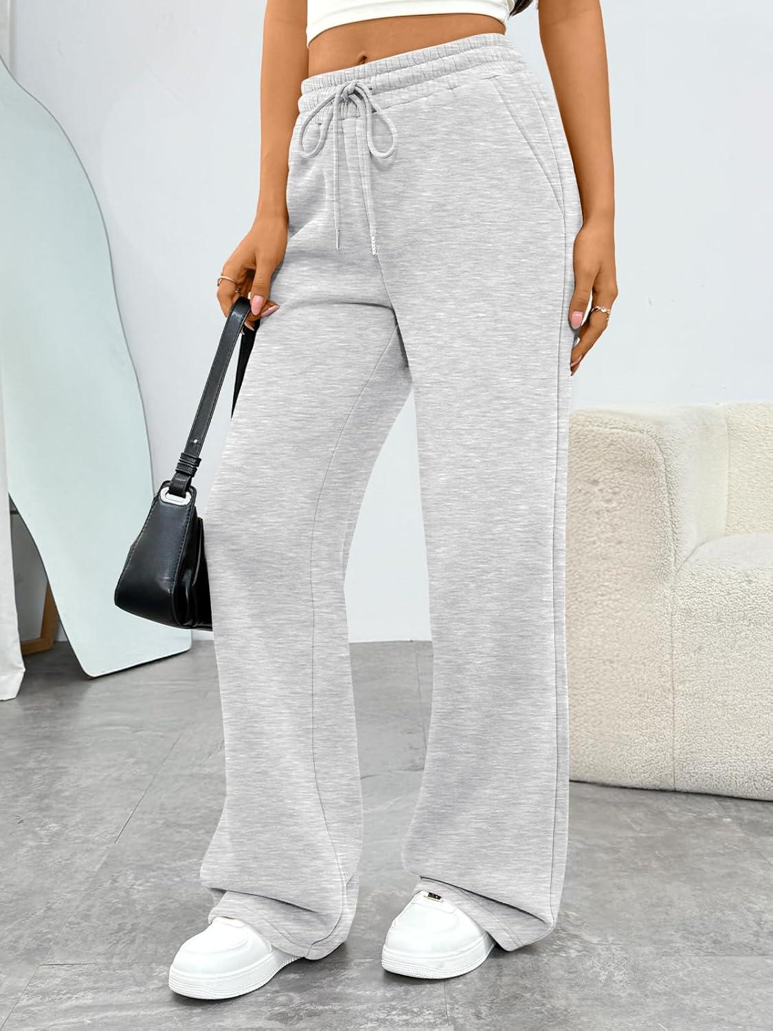 Trendy Queen Women‘s Wide Leg Sweatpants, Baggy Barrel Pants with Pockets, High Waist Lounge Joggers for Fall Winter(Grey)