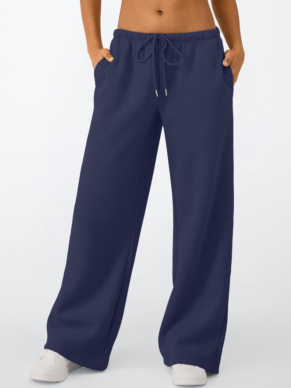 Trendy Queen Womens Wide Leg Sweatpants Baggy Drawstring Low Rise Lounge Pants 2025 Fall Joggers with Pockets(Navyblue)