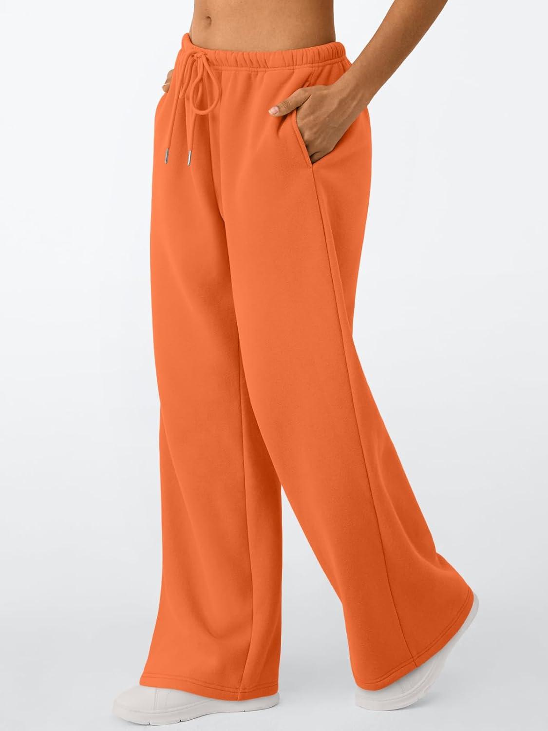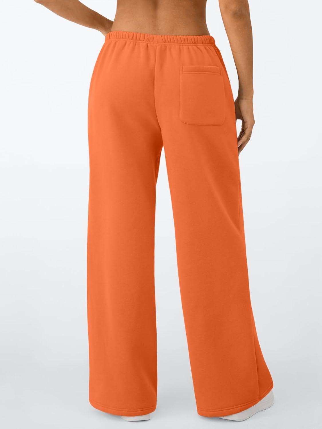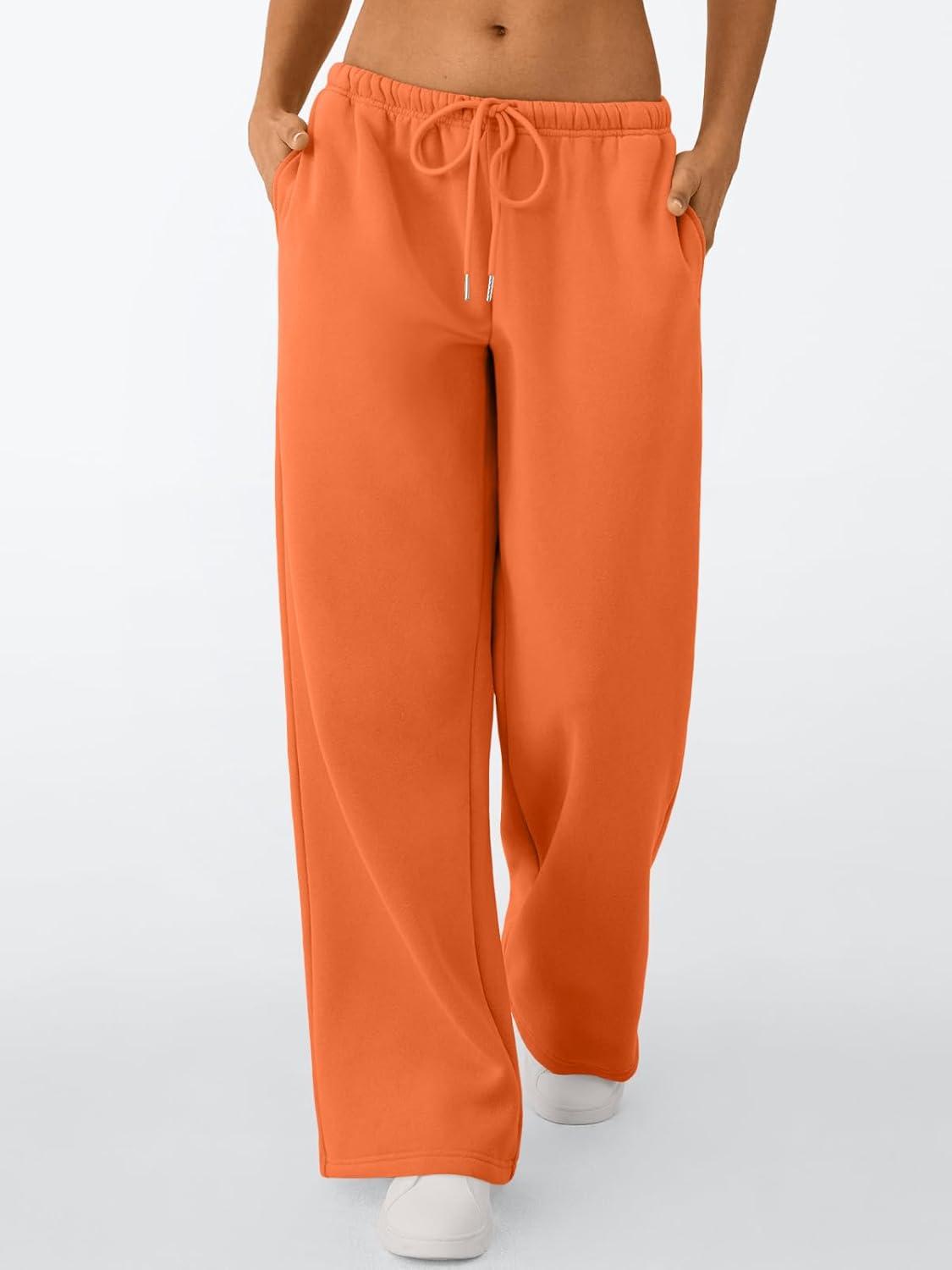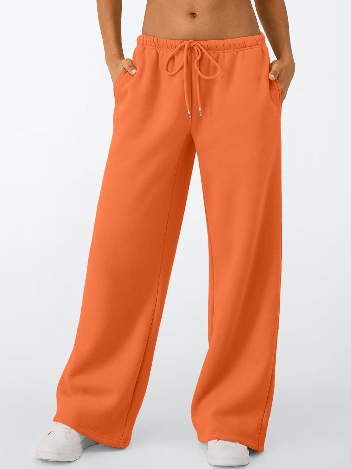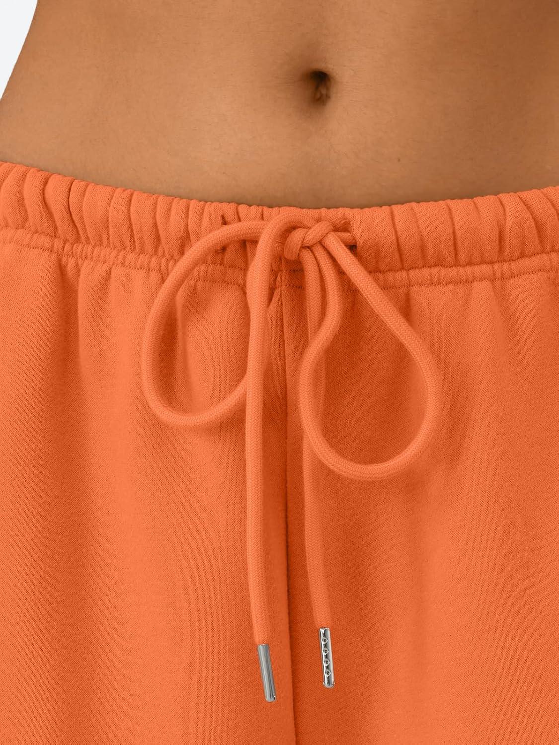 Trendy Queen Womens Wide Leg Sweatpants Baggy Drawstring Low Rise Lounge Pants 2025 Fall Joggers with Pockets(Orange)