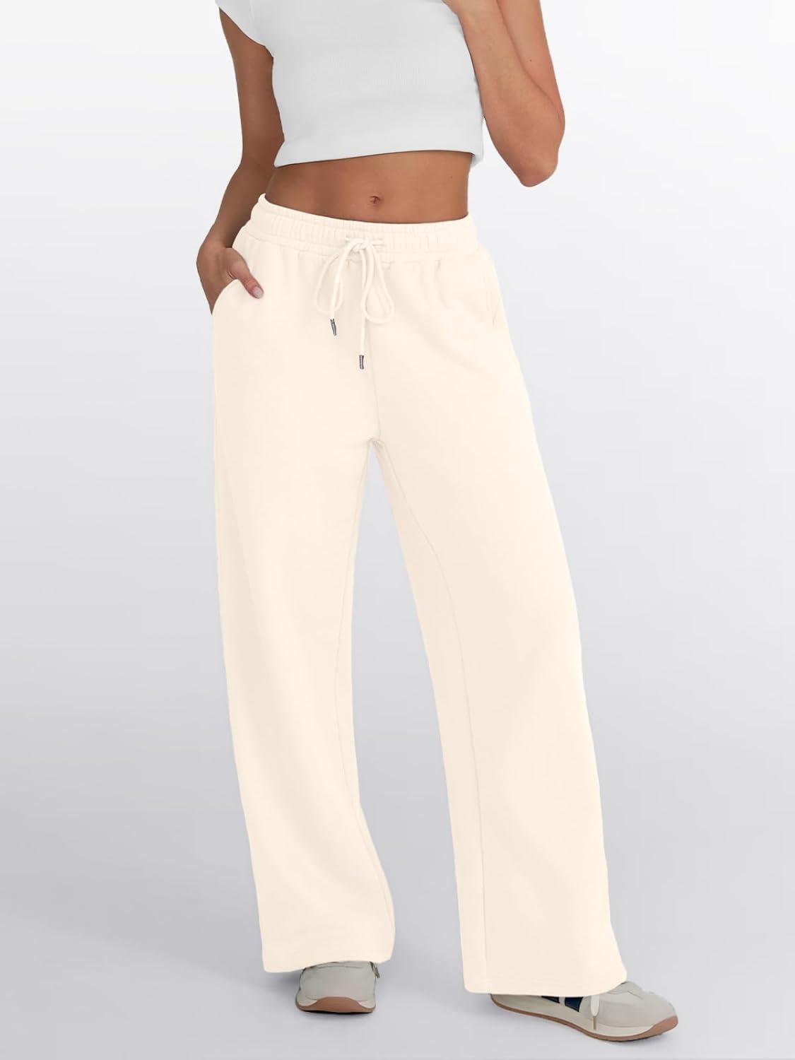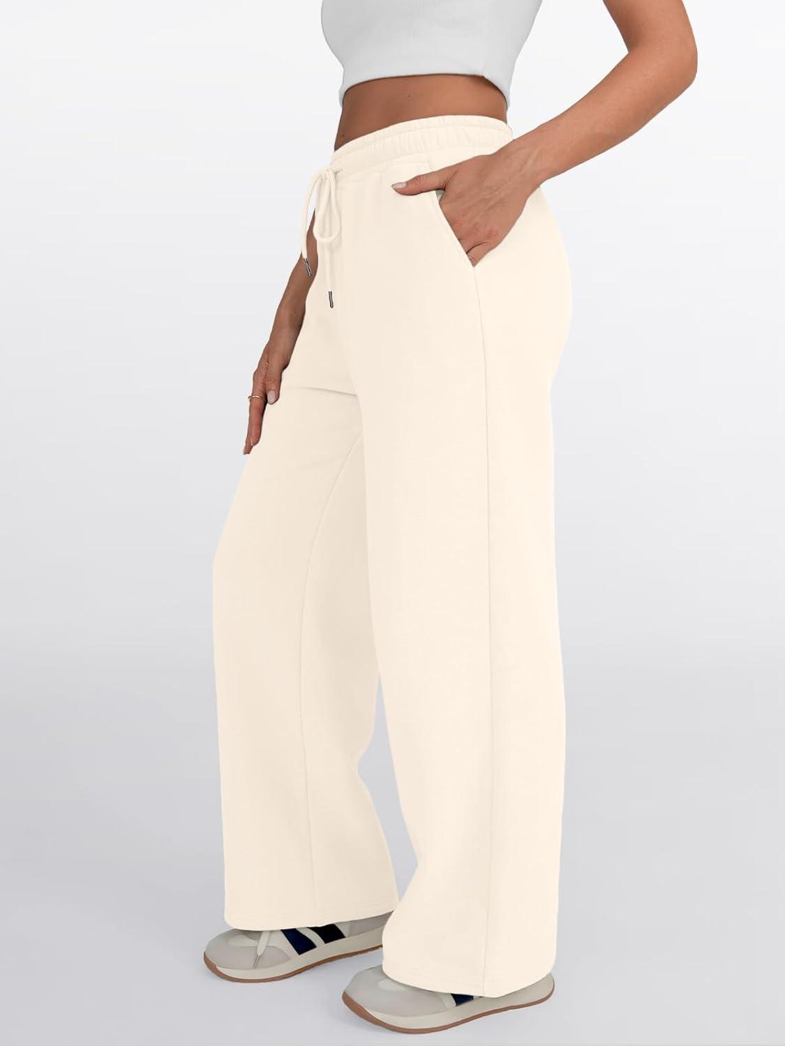 Trendy Queen Womens Wide Leg Sweatpants Baggy Lounge Travel Pants Fall Fashion Outfits 2025 Winter Joggers Clothes(Apricot)