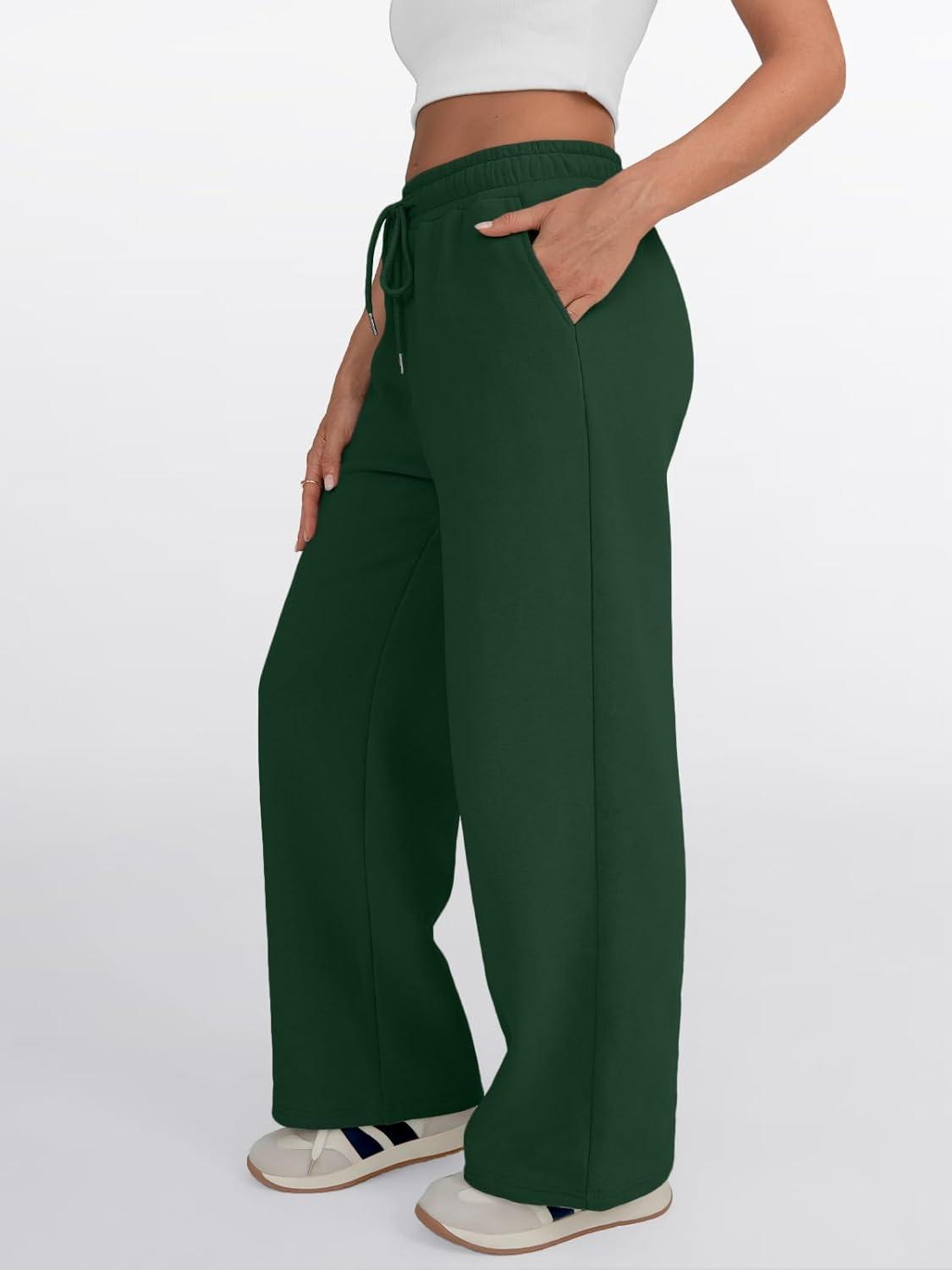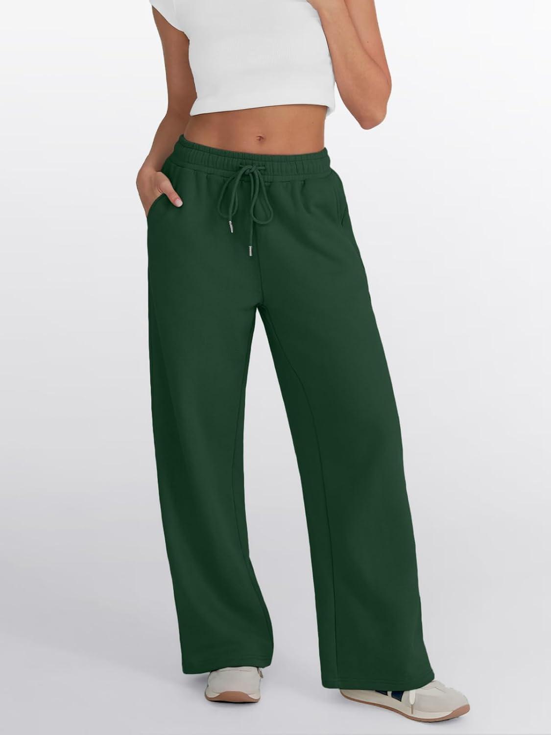 Trendy Queen Womens Wide Leg Sweatpants Baggy Lounge Travel Pants Fall Fashion Outfits 2025 Winter Joggers Clothes(Green)