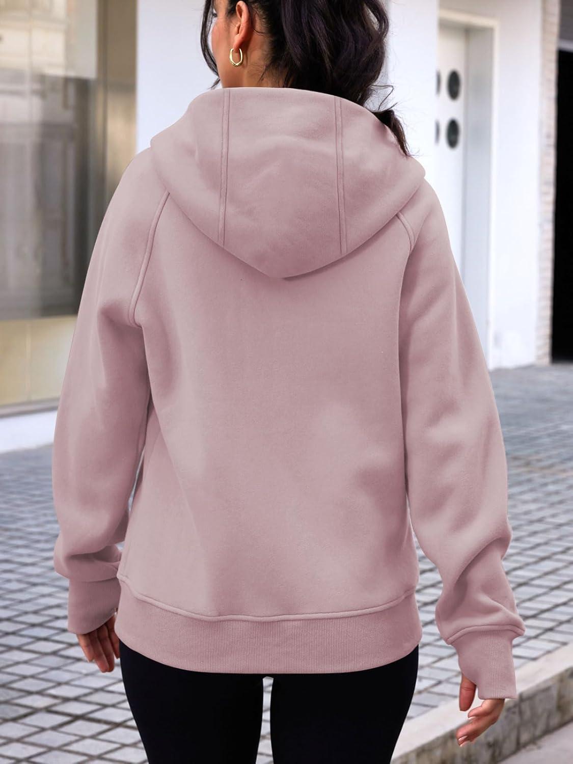 Trendy Queen Womens Zip Up Hoodies Fleece Jackets Oversized Sweatshirts Fall Fashion Outfits Sweaters Winter Clothes(Darkpink)