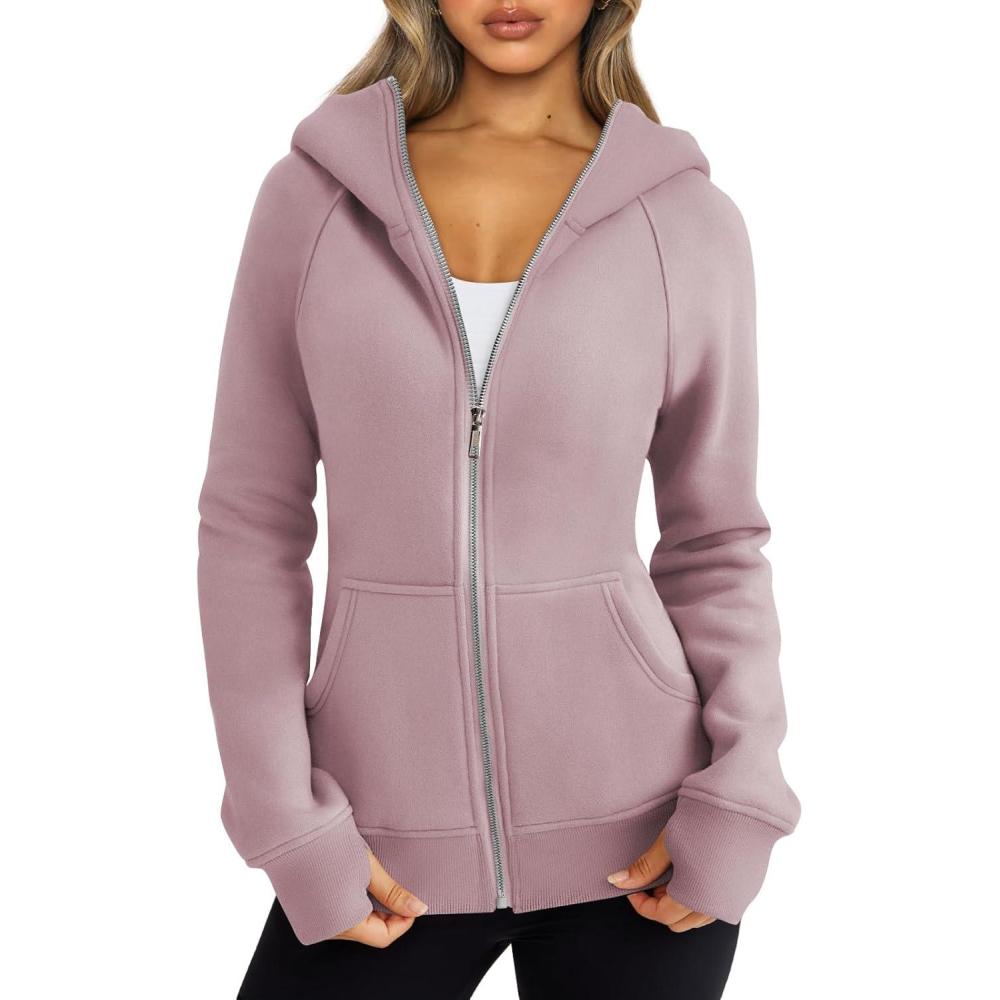 imageTrendy Queen Womens Zip Up Hoodies Fleece Jackets Oversized Sweatshirts Fall Fashion Outfits Sweaters Winter ClothesDarkpink