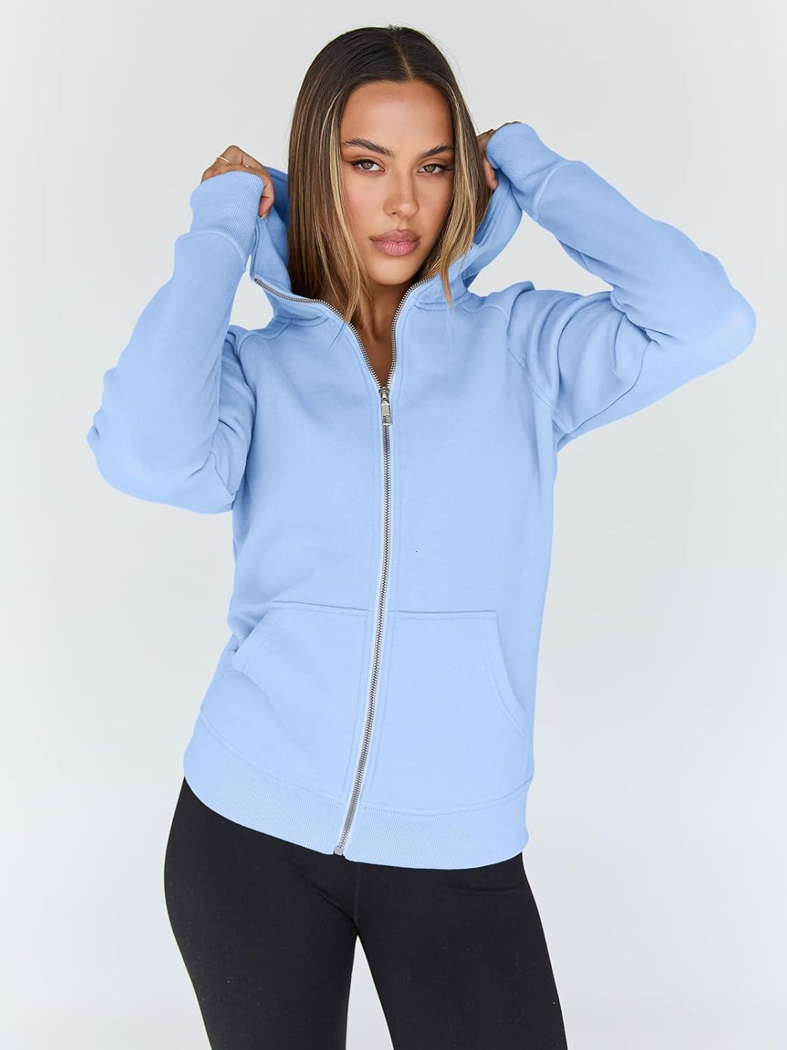 Trendy Queen Womens Zip Up Hoodies Fleece Jackets Oversized Sweatshirts Fall Fashion Outfits Sweaters Winter Clothes(Lightblue)