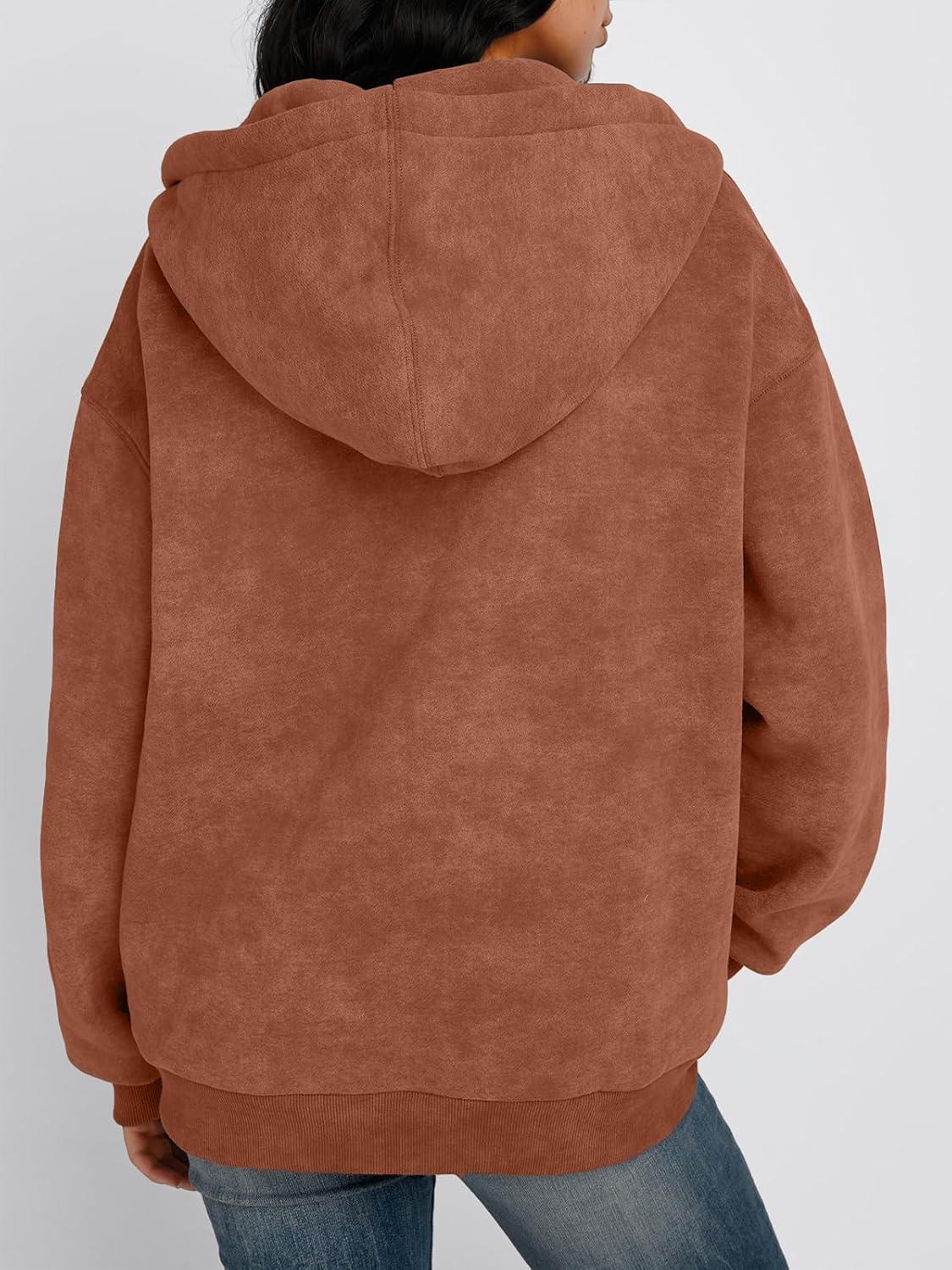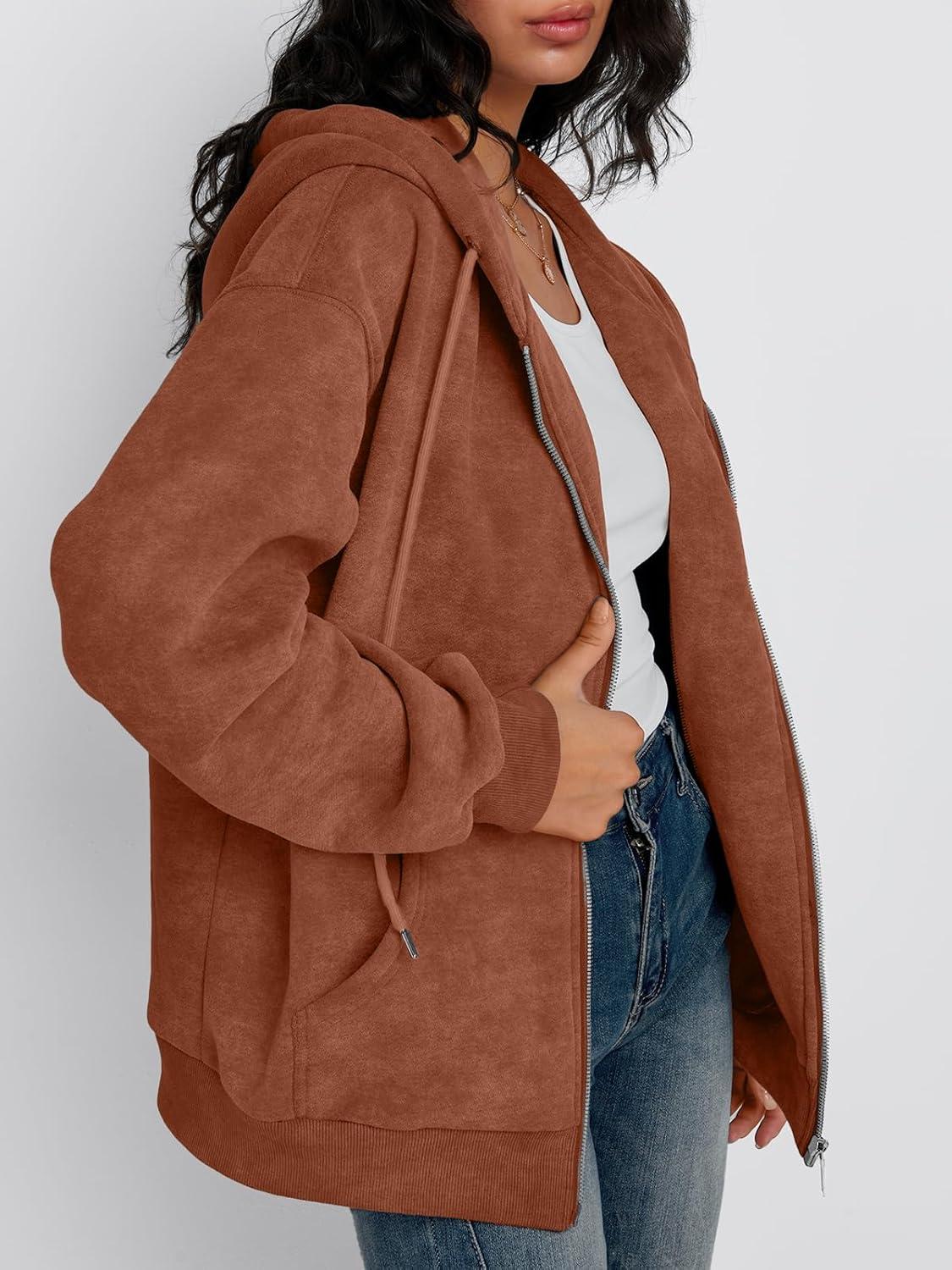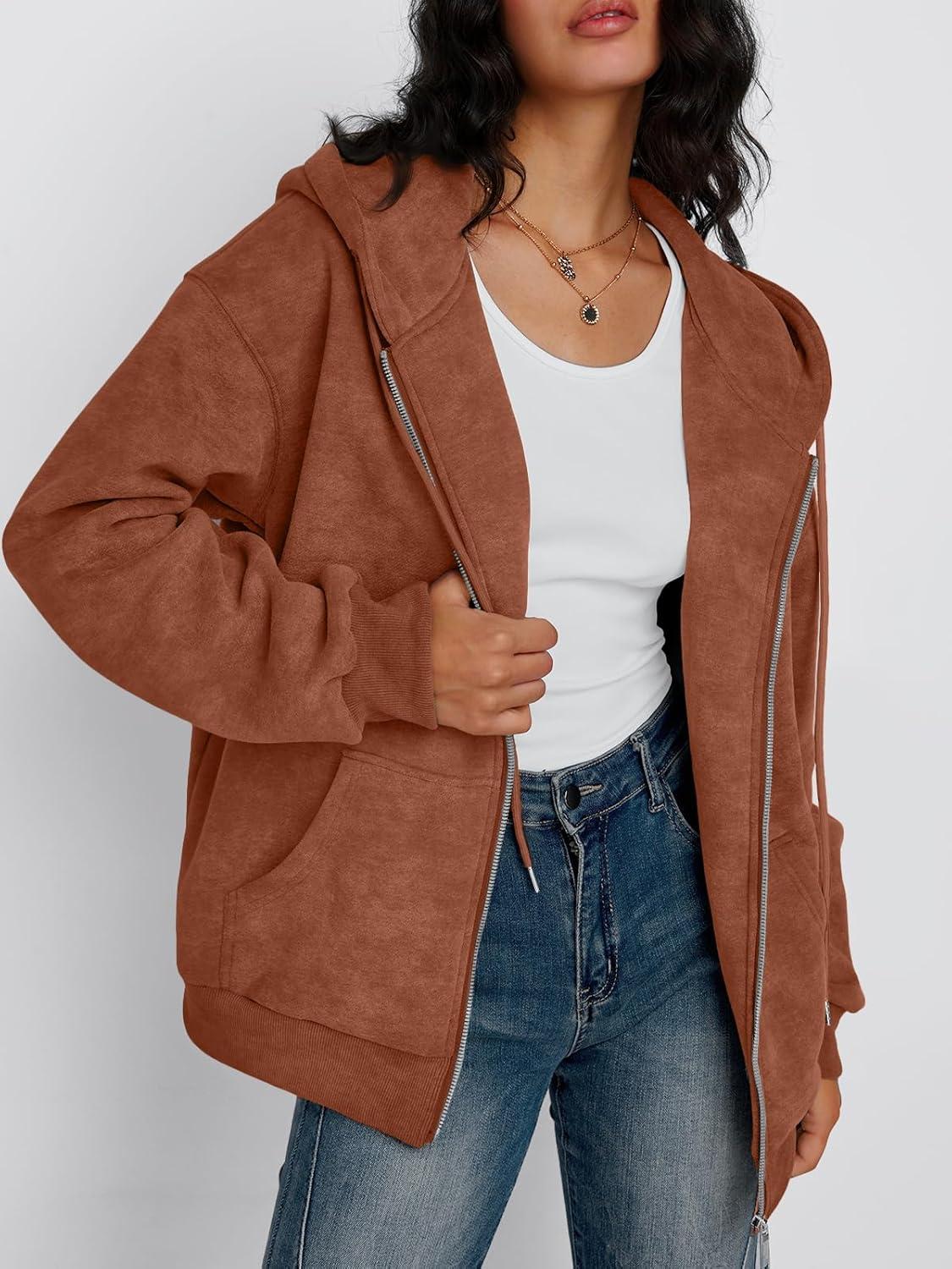 Trendy Queen Zip Up Hoodies for Women Acid Wash Oversized Sweatshirt Fall Fashion Jacket Cute Y2k Winter teen girls pullover(Brown)